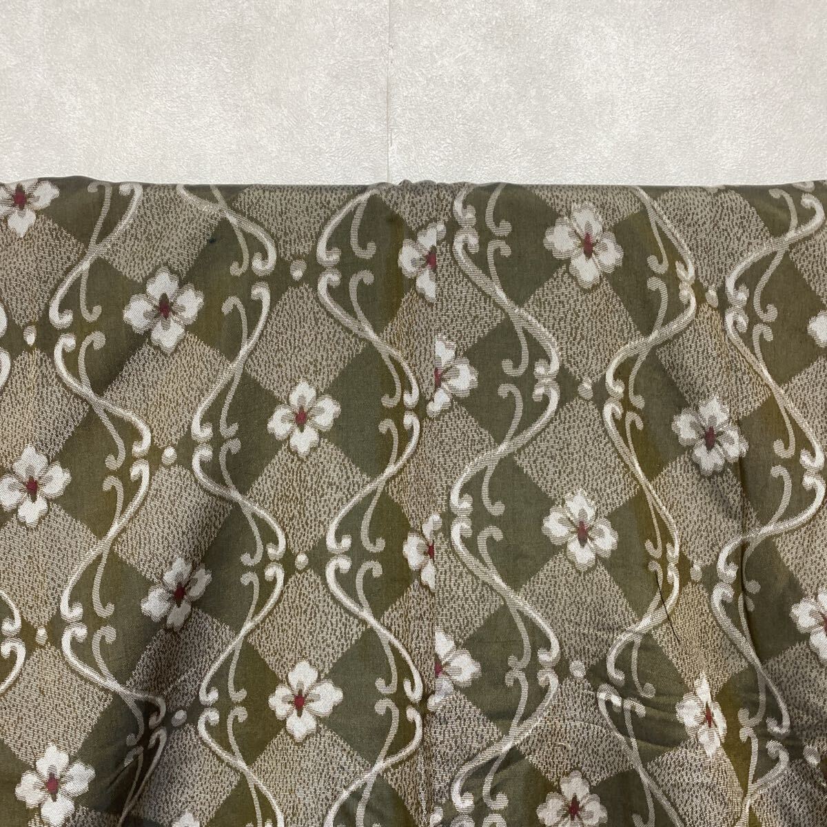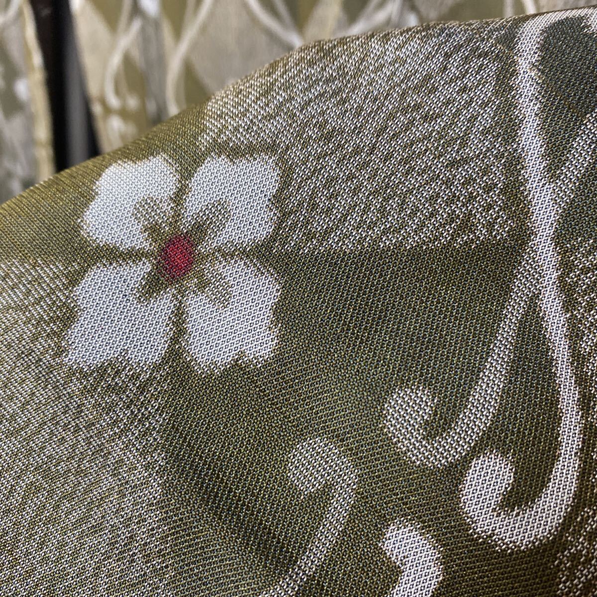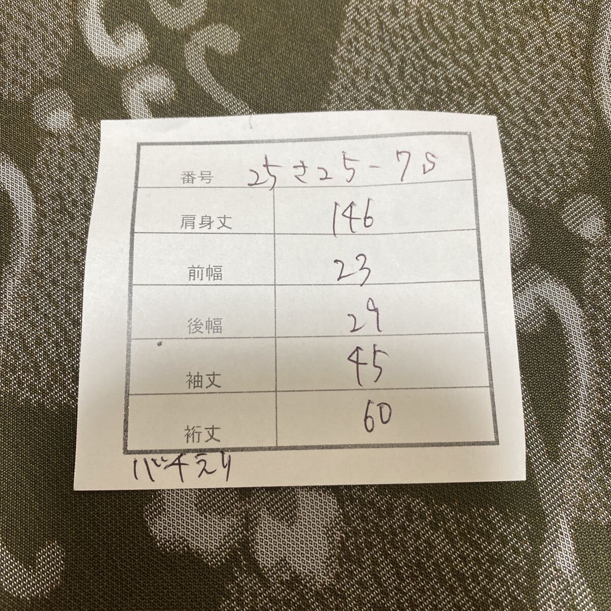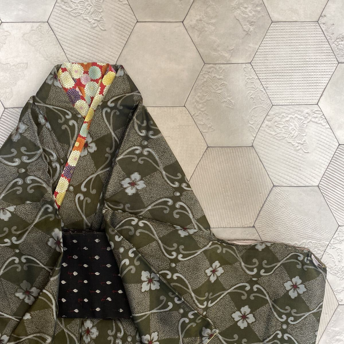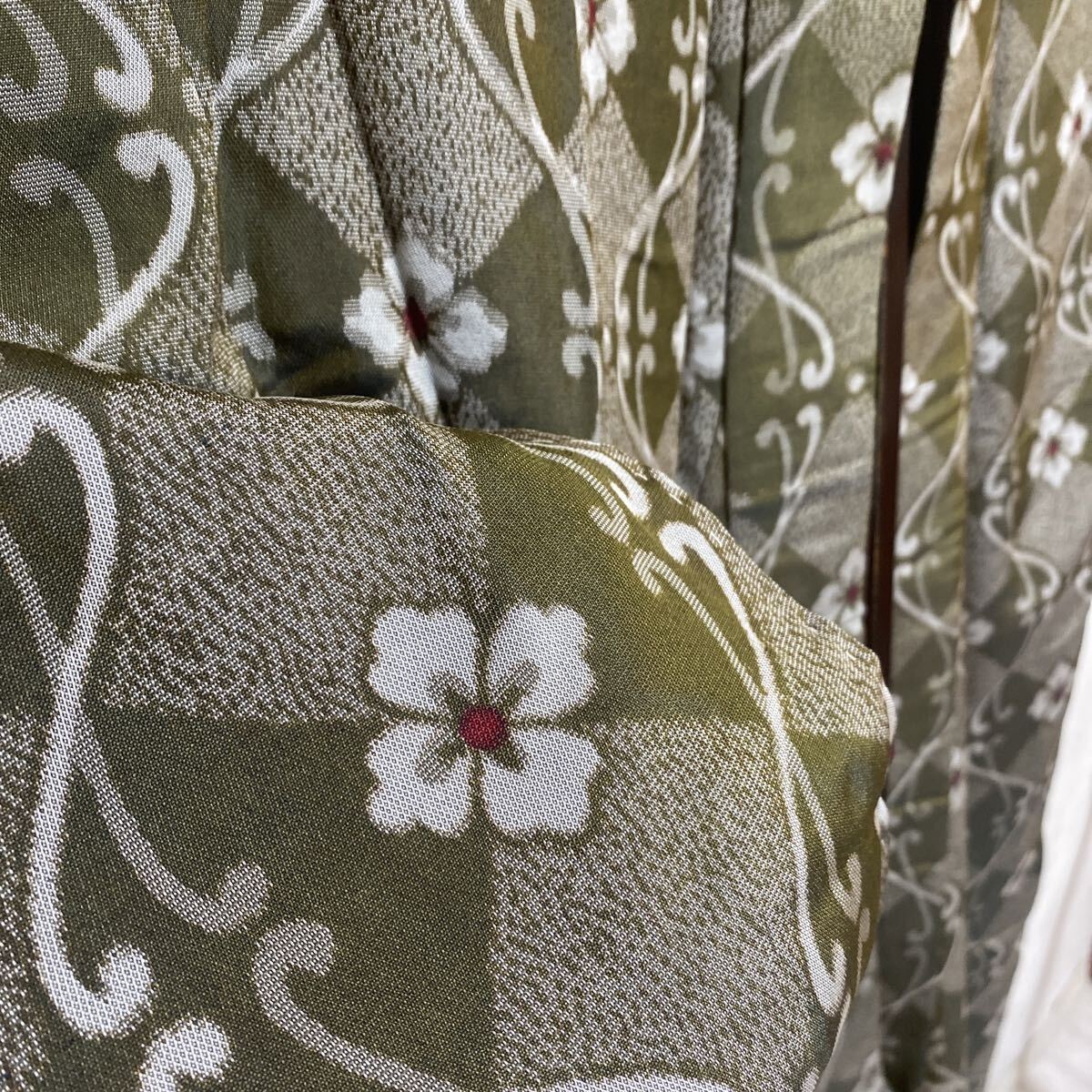 アンティーク 着物 正絹 菱形 唐草 花 カーキ バチ襟 昭和レトロ 大正ロマン モダン 和洋折衷コーデ リメイク 25さ25-7s