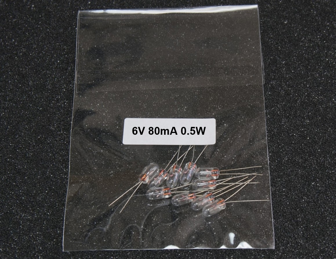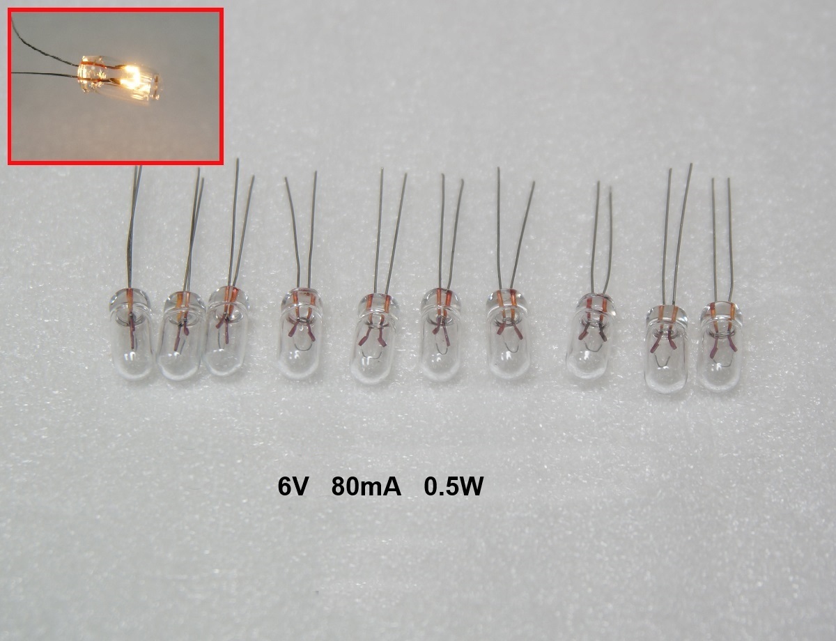 新品 電球 6V 80mA 0.5W 直径 5mm 10個セット     オーディオ・VUメータ・アンプ・無線機用のフィラメントランプ セットです。動作チェック済み。交流・直流 使用可能です。アンティークな雰囲気を醸し出す、パネルメーター、アナログアンプ等のVUメーターのバックライトに使われる白熱電球です。LEDでは出せない淡い光を演出。独特の雰囲気を演出します。10個のお値段です。必要セットは個数で選んで下さい。送料は同じ180円です。