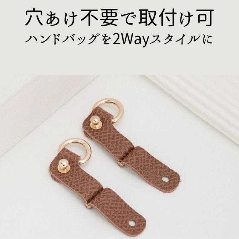 外付け用の留め具が付属しているので、ハンドバッグに取り付ければショルダーバッグとして2wayで活用可能。お気に入りのバッグをさらに便利に使えます。