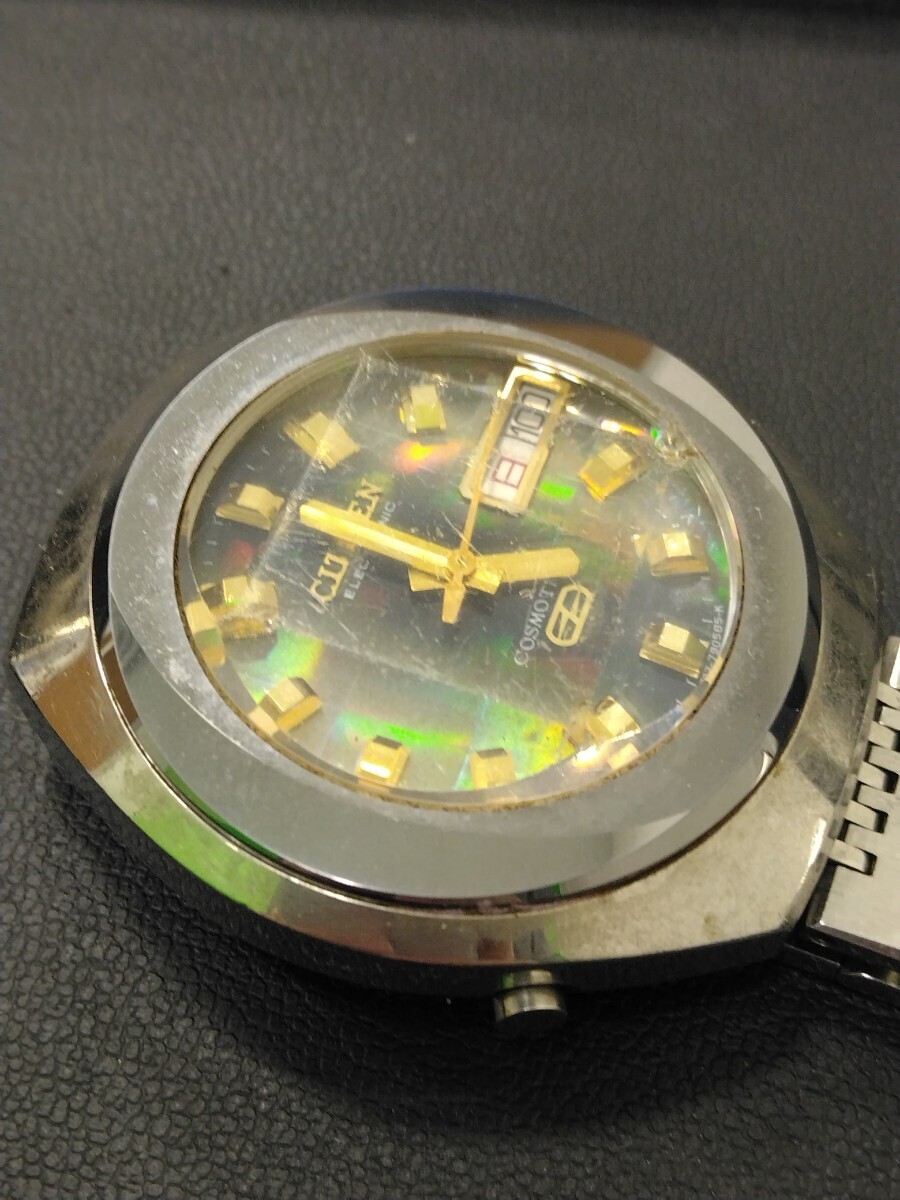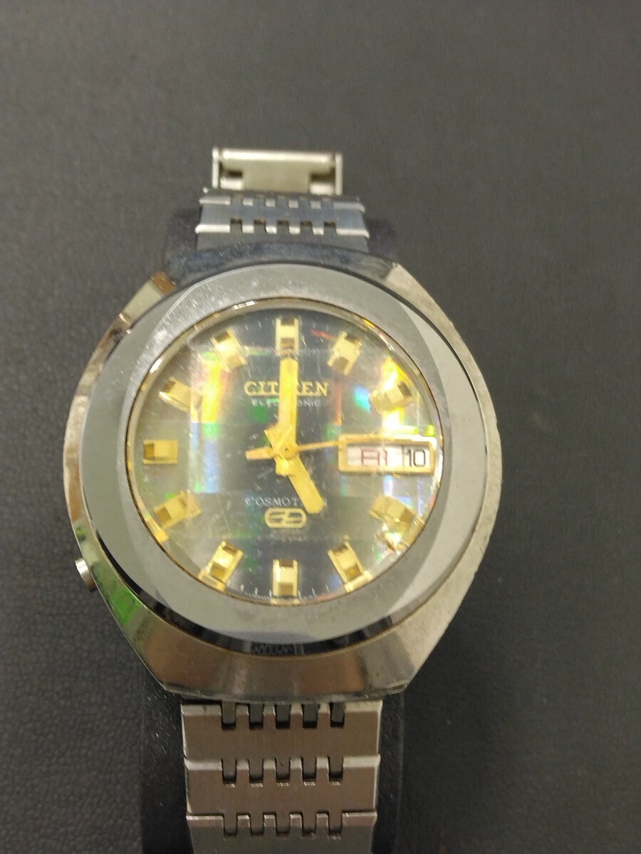 CITIZEN シチズン COSMOTRON コスモトロン ELECTRONIC 7803-790057 茶文字盤 QZ デイデイト メンズ 腕時計 不動 ベルト不具合あり
