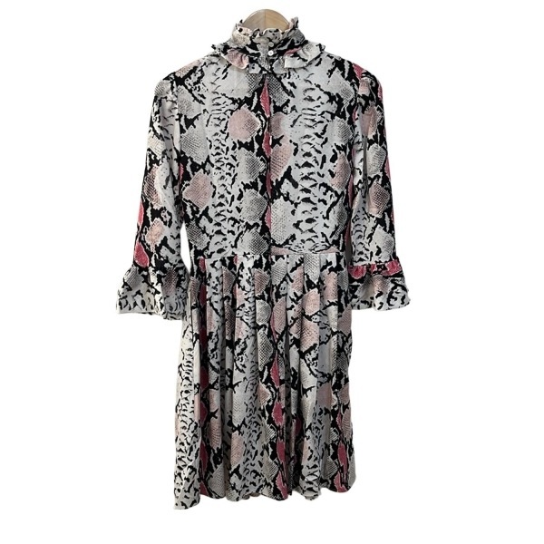 デザイン:ハイネック/七分袖/ロング/パイソン柄/スパンコール/フリル