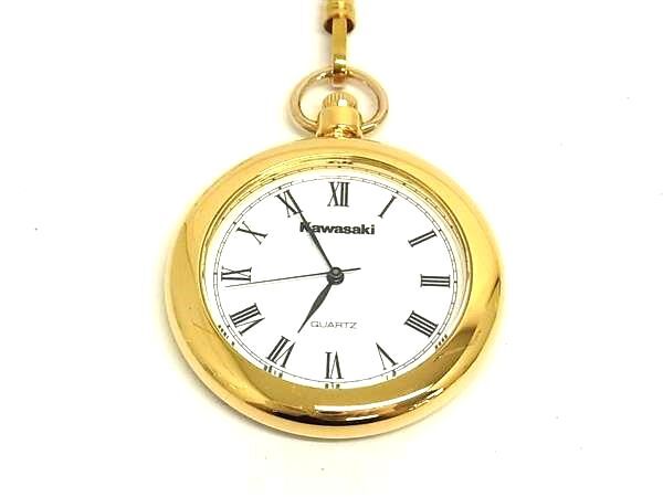 ■極美品■ kawasaki カワサキ SS クォーツ 懐中時計 ウォッチ メンズ レディース ゴールド系 DK1290