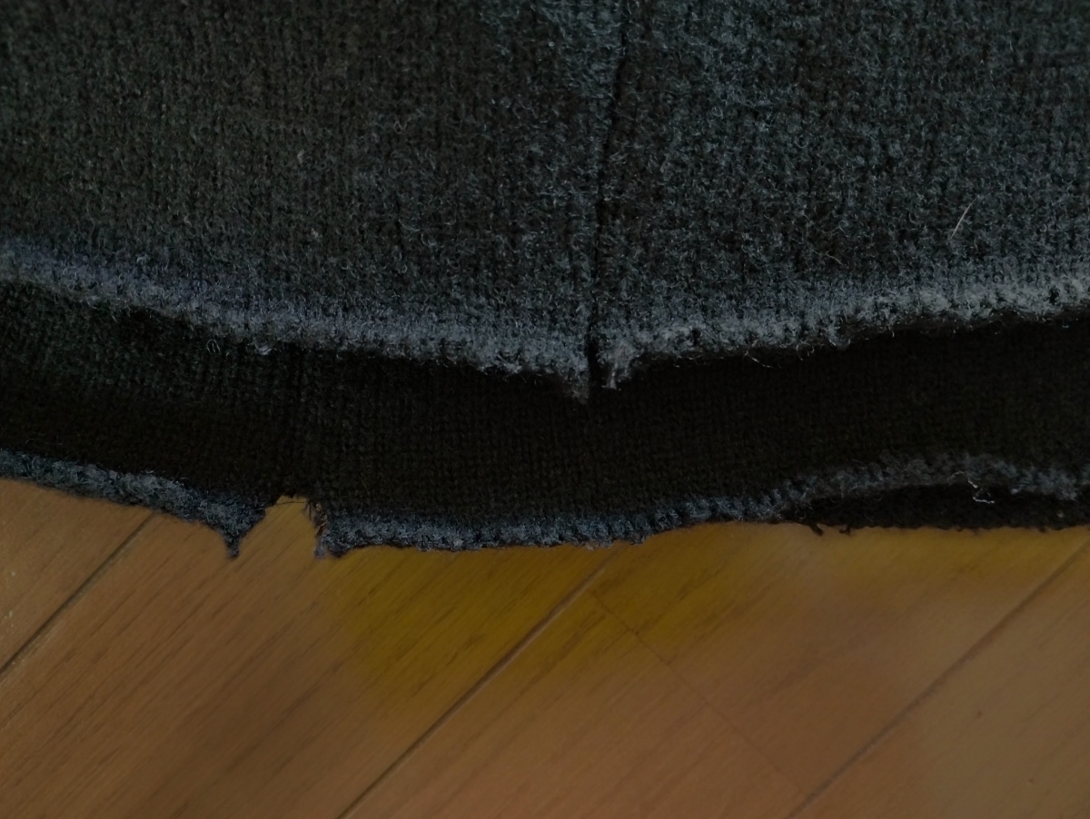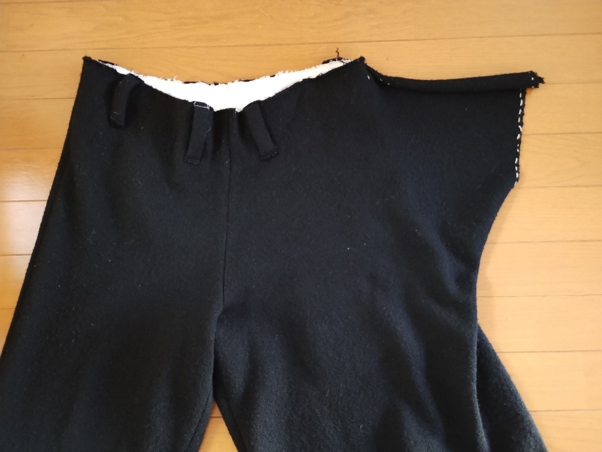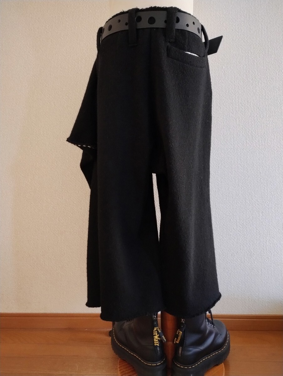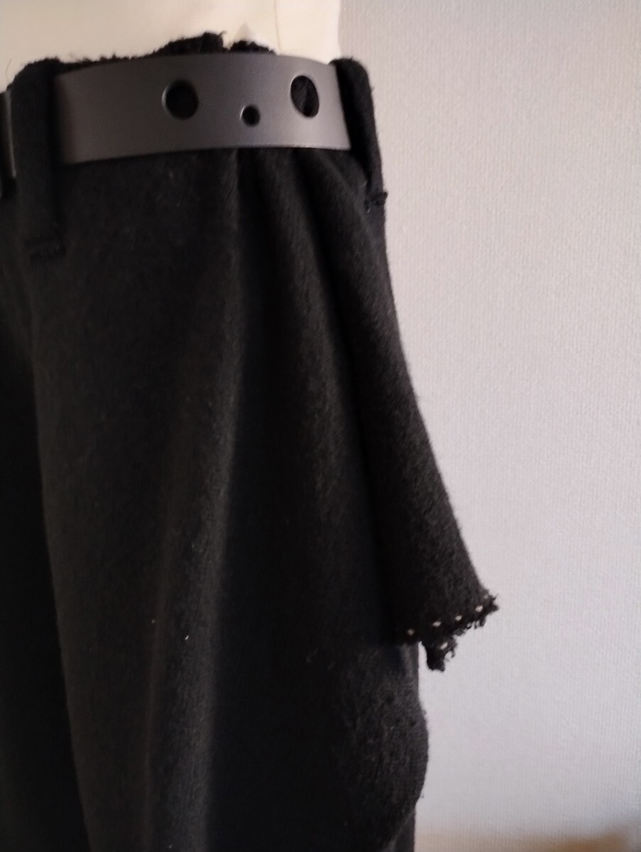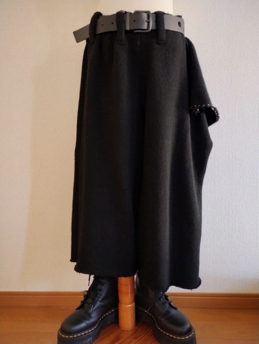 スッポリ穿きベルト使いで穿くニットパンツ、