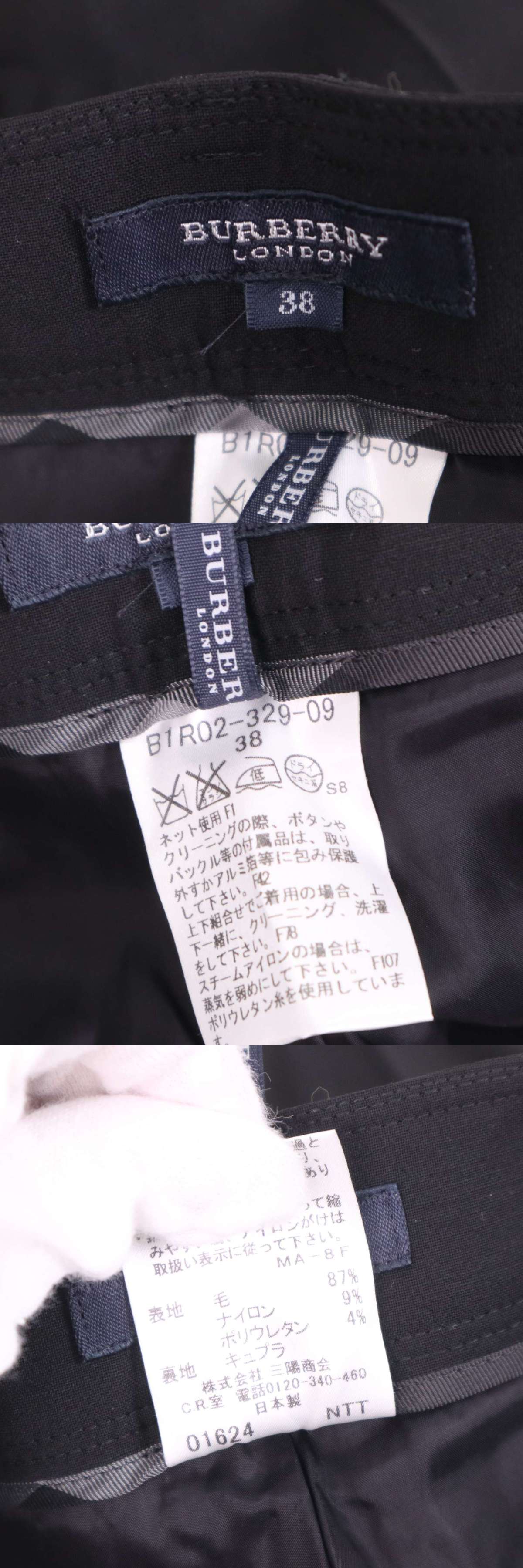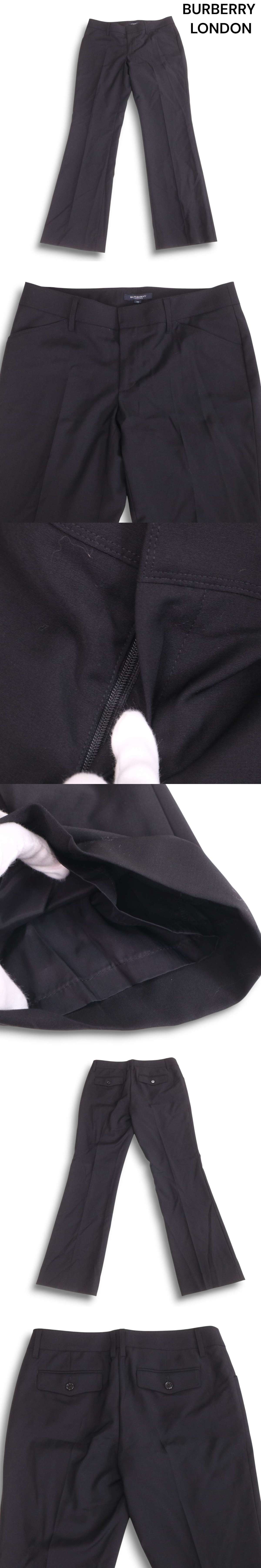 BURBERRY LONDON バーバリー ロンドン 通年 ストレッチ ウール ブーツカット スラックス パンツ Sz.38 レディース 黒 日本製