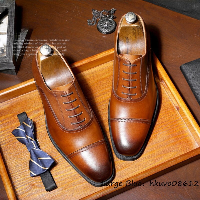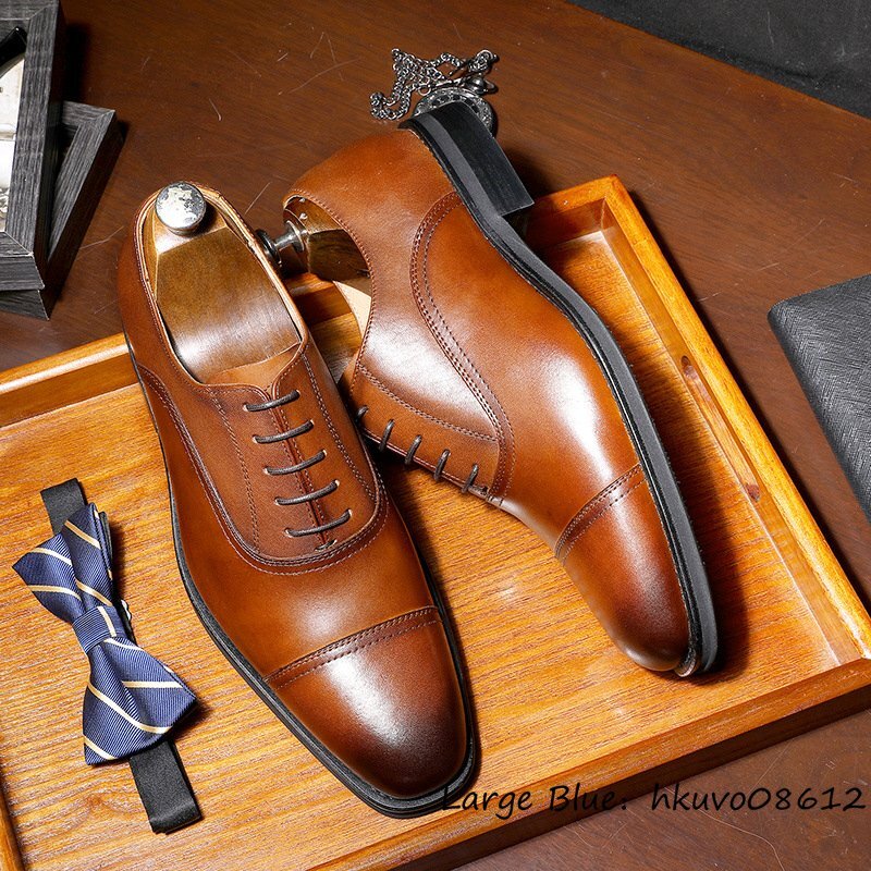 定価13万★正規品 イタリア製 レザーシューズ 牛革 革靴 職人手塗り上げ ビジネスシューズ メンズ 紳士靴 新品 フォーマル ブラウン 27.5cm