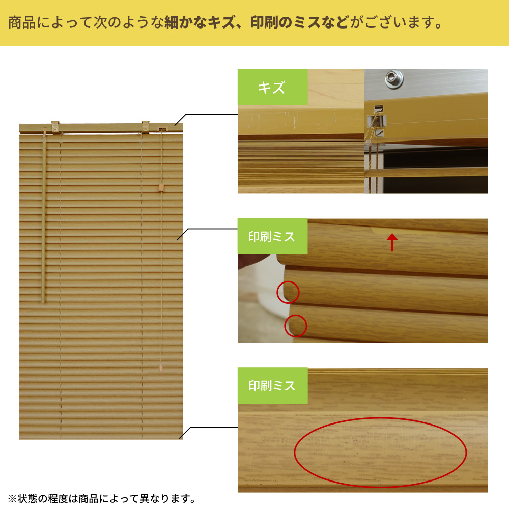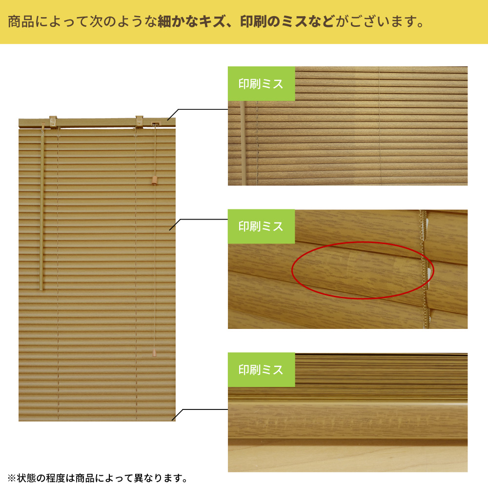 ヘッドレールやボトムレールなどのキズ スラットの塗装・印刷のミス・ムラ・汚れ |