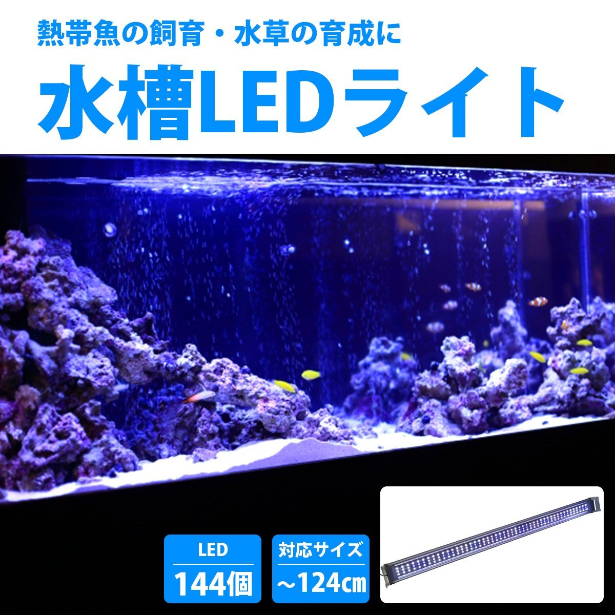 120cm-125cm 水槽用 照明 LED ライト ブルー×ホワイト 青/白 シルバー枠 アクアリウム ライト LED 照明 水槽 サンゴ 熱帯魚