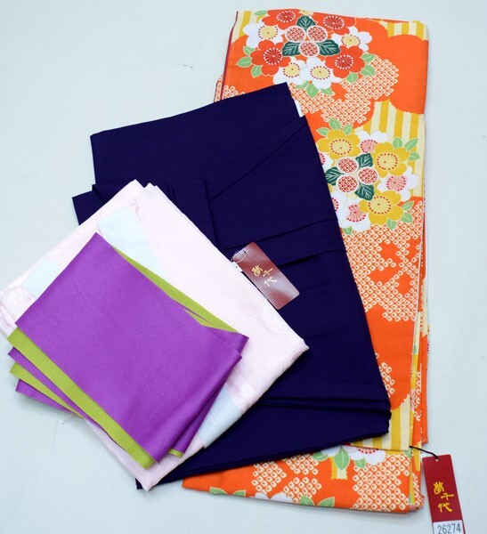| 袴下帯 変更可 着付け小物セット | ★黄色×赤色リバーシブルの袴下帯に変更可能です (変更に伴う価格の変動はございません) ※ここから画像をご確認いただけます。 ★着付け小物セットMサイズ/Lサイズを別途\5980でご用意できます。 ※肌着(着物スリップ)参考サイズ M:身丈120cm 身巾52cm 繰越10cm 裾廻130cm L:身丈120cm 身巾60cm 繰越10cm 裾廻140cm ※ご要望のお客様は、「フォーム備考欄」「メール(aji_net@khaki.plala.or.jp)」「お電話」「FAX」いずれかの方法でご連絡ください。 |