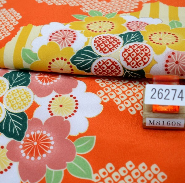 | 品質 | ・新品 ・綸子地 ・刺繍袴 ★着物ブランド:夢千代 ★着物の表地に高質ポリエステルを使用 高質ポリエステルの特徴 1.正絹と比べても見劣りしません。 (むしろ低質な正絹よりも高質ポリエステルの方が見栄えが断然良いです。) ※ポリエステルより正絹が良い品質とされたのは、昔のこと。 近年の合繊技術向上により、ほとんど見劣ることがございません。 2.合繊であるため、正絹と比べて保存状態が良く長い時間を経ても状態が変化しにくいです。 3.万一、汚れても洗うことができます。 その場合はクリーニングに出すことをお勧めいたしますが、正絹より安価で取り扱っていただけます。 ★表地、裏地、袴地ともにポリエステル100% ◎綸子とは? 地質がやわらかく美しい光沢があり、振袖や訪問着などに広く用いられている、経糸で地を、緯糸で地紋を織り出して布の表面に模様を現した繻子組織で、染下生地に用いる紋綸子のこと。 ※当店では、現物と写真画像の色、イメージに相違がないよう、撮影に工夫を凝らしておりますが、より詳しいお色説明をご希望のお客様は、 「ヤフー設置の質問」「メール(aji_net@khaki.plala.or.jp)」「お電話」「FAX」にて、御質問ください。 ※実物は写真と柄の配置が異なる場合がございます。 |
