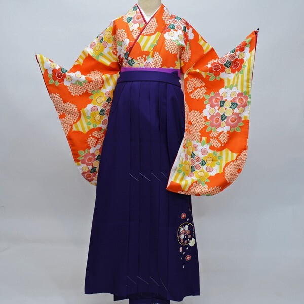 | サイズ | ★着物は丈の短い袴専用着物です。 そのため、丈をたぐる必要がないので着付けが非常に楽です。 着物:身丈約110cm 袖丈76cm 裄丈68cm 袴:袴下91cm 適合身長約153cm~160cm ※袴サイズを変更することで適合身長を変えることができます。 ◎袴下95cm(適合身長160cm~170cm)に変更可能です。 ◎袴下87cm(適合身長145cm~153cm)に変更可能です。 ※ご変更をご要望のお客様は、「フォーム備考欄」「メール(aji_net@khaki.plala.or.jp)」「お電話」「FAX」いずれかの方法でご連絡ください。 ※上記適合サイズ外の場合でも御相談承ります。 |