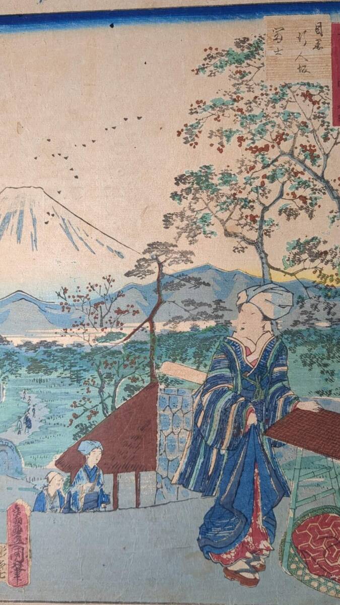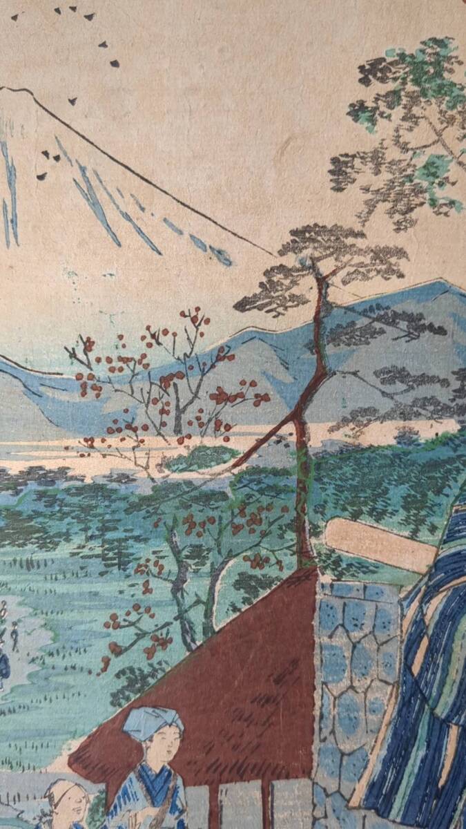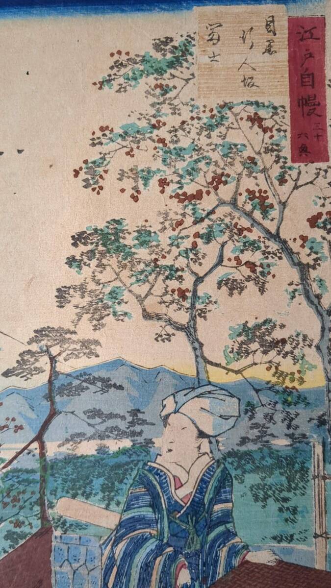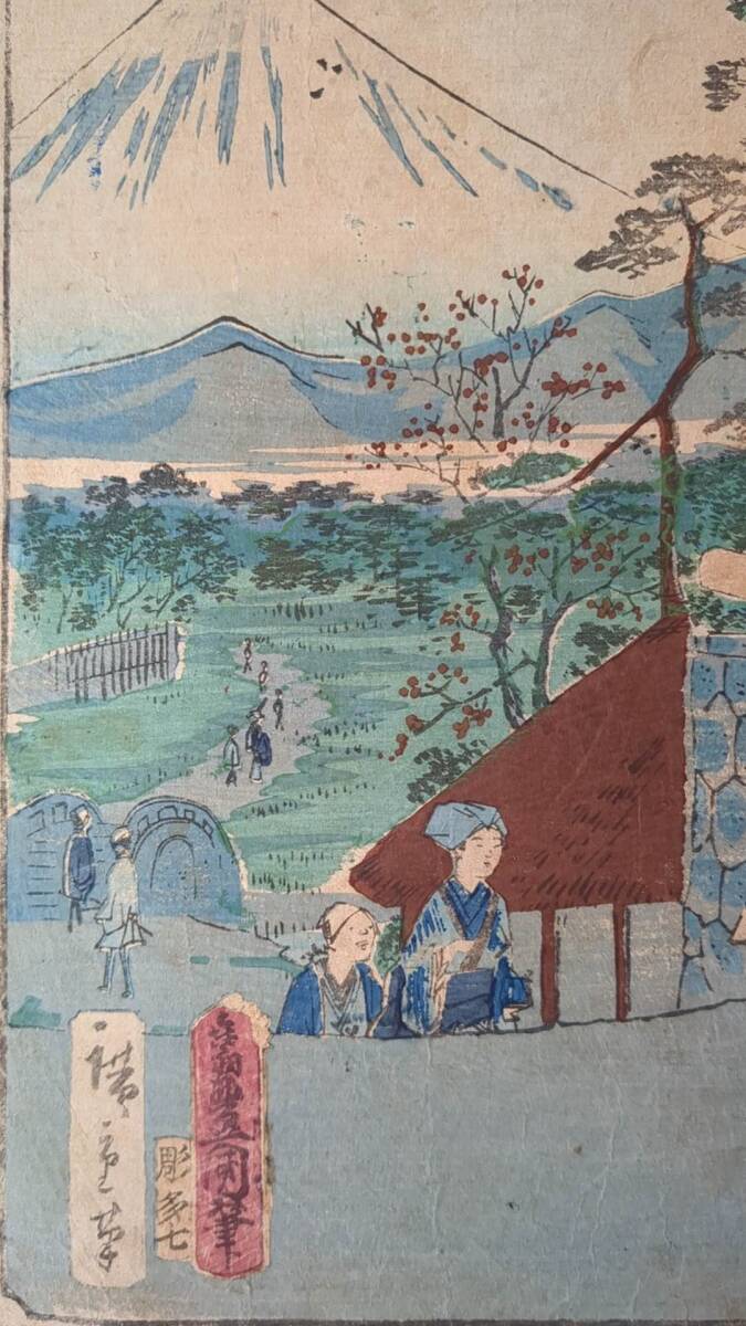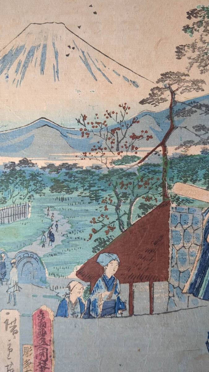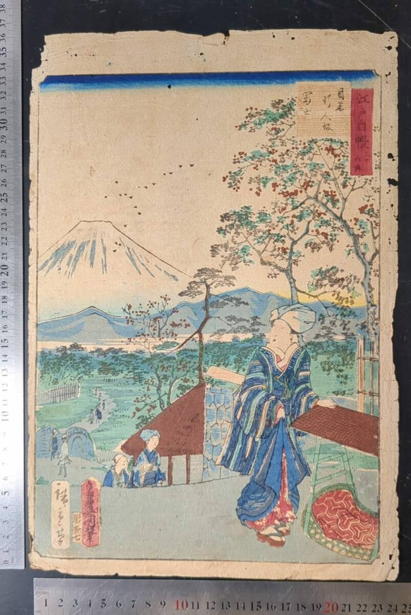 s120230浮世絵 真作 版画 江戸自慢三十六興 目黒行人坂富士 広重 豊国 木版画 錦絵