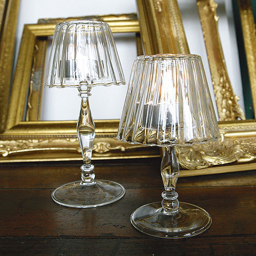 昔ながらのシェードランプをガラスで再現したっていうオシャレなキャンドルホルダーです。