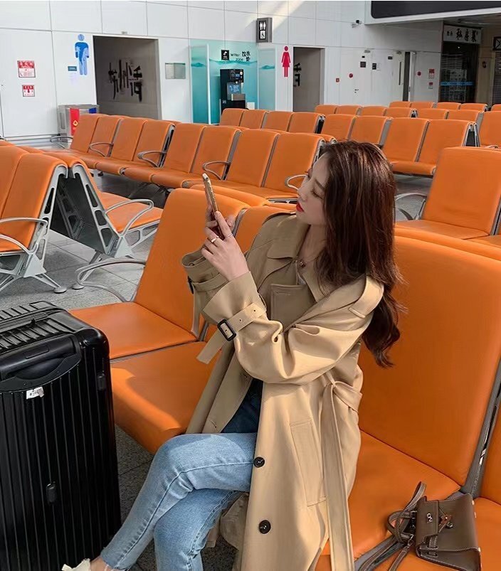 トレンチコートスプリングコートレディース30代40代大きいサイズロングコート春アウター羽織りきれいめ 通勤 カーキ XXL