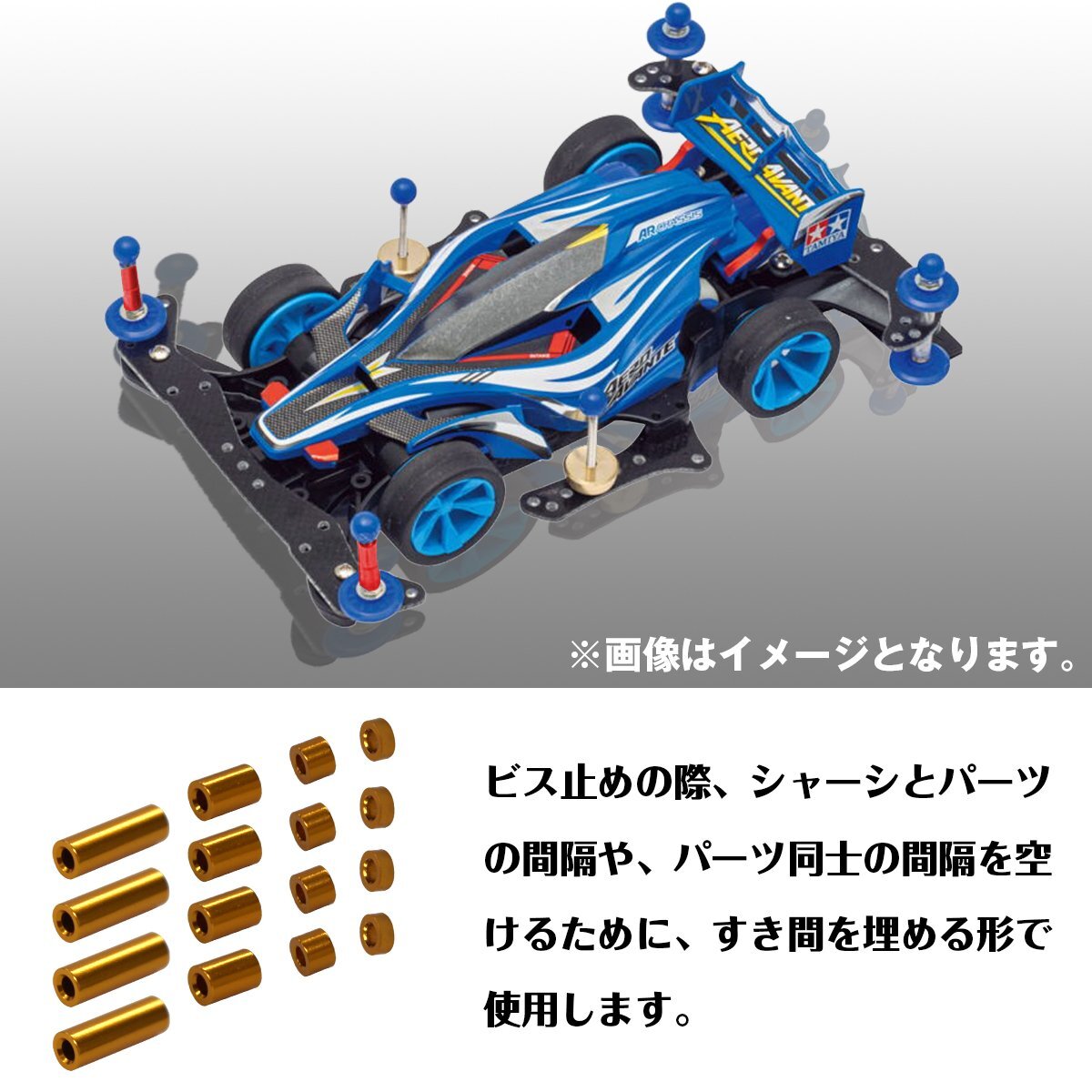 ミニ四駆用 アルミ 合金 スペーサー 4種 16個 セット (12mm/6mm/3mm/1.5mm 各4個) 金 ゴールド パーツ タミヤ グレードアップ