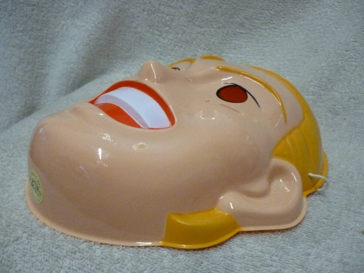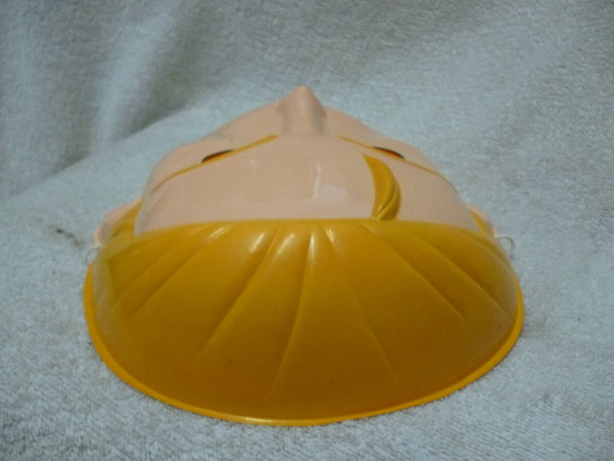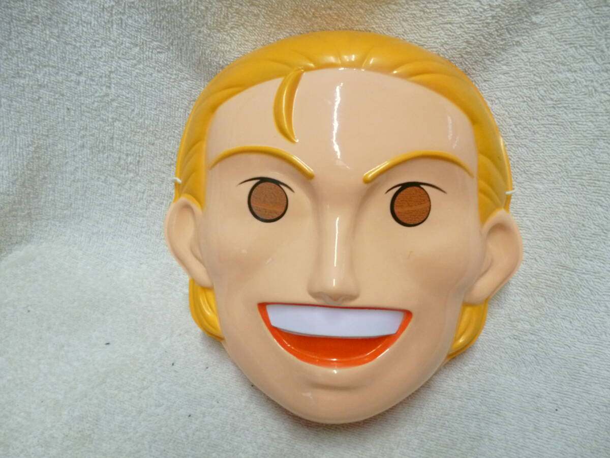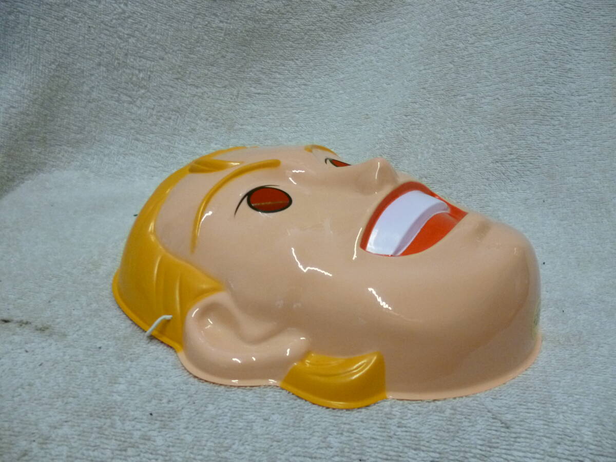 | お面 1枚となります。 なかなか出回らないお面で、画像は使い回しです。 バチモン/バッタモンと違い版権シールもございますし、造りもちゃんとしているかと思います。 ただ古い物の保管品なので、些細な擦れやゴムの伸びなどあり、フチに割れが入っている場合もございます。 ゴムに関しては交換してご利用ください。 おおよそのサイズは横17㎝ 縦19㎝となります。 レトロなインテリアにいかがでしょうか? |