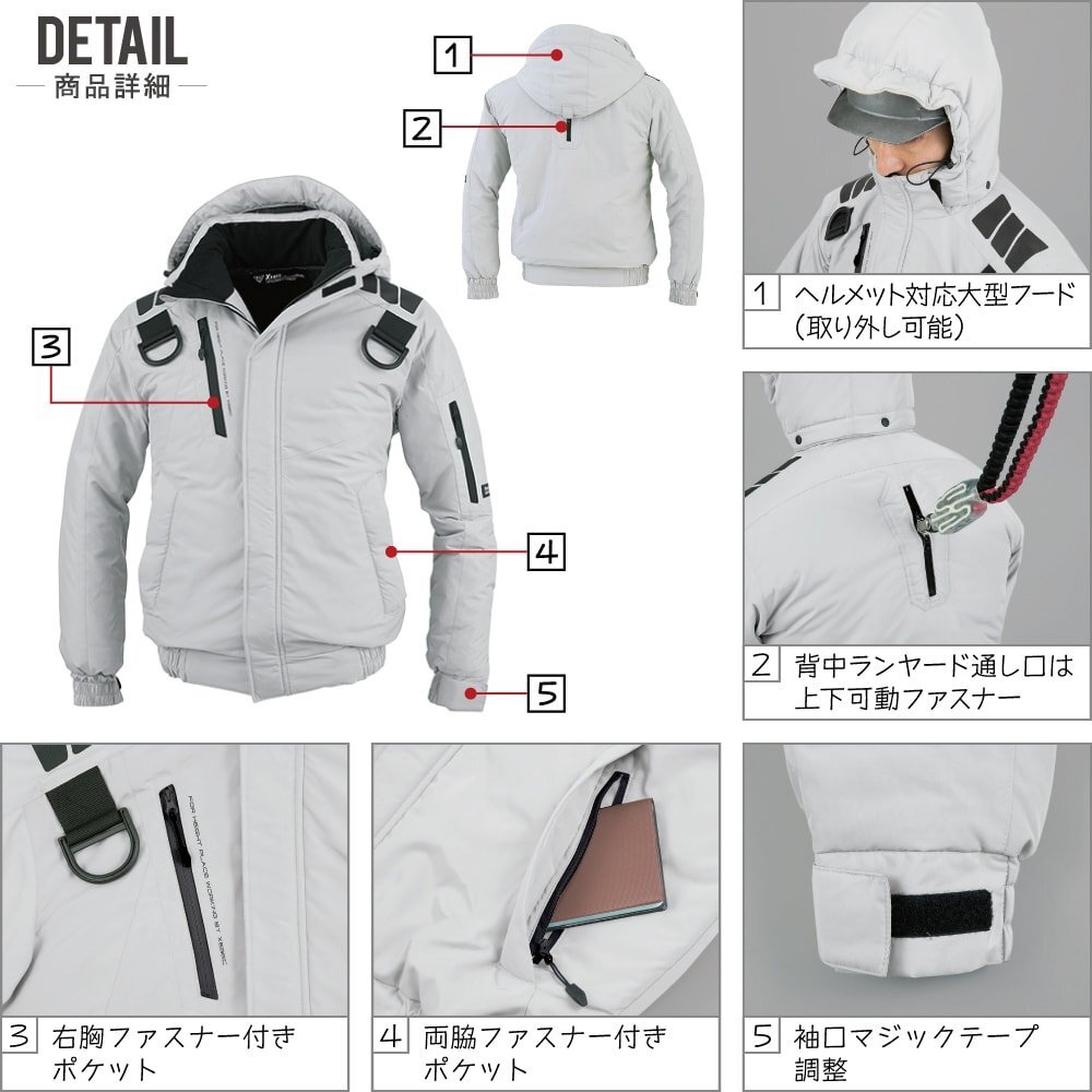 ジーベック 秋冬 中綿 防寒 ブルゾン 撥水加工 脱着式フード フルハーネス対応 122 色:シルバーグレー サイズ:3L ★ 対象2点 送料無料 ★