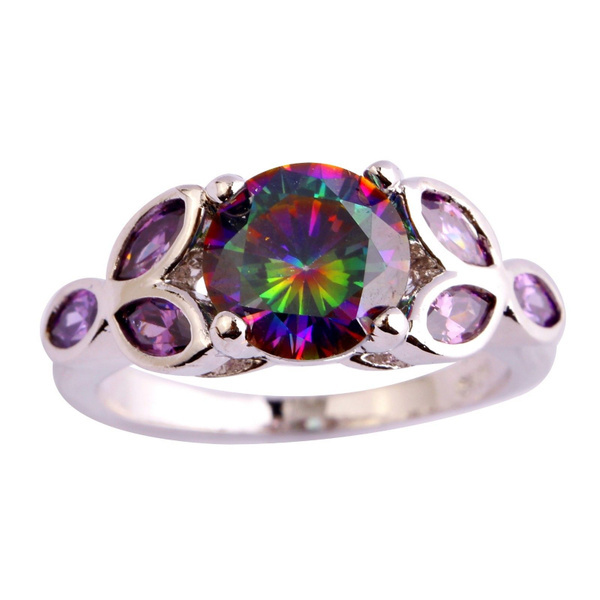 【YB497-7】指輪 リング マルチカラー パープル 紫 キラキラ エレガント 紫陽花 オーロラストーン 豪華 派手好き 大人