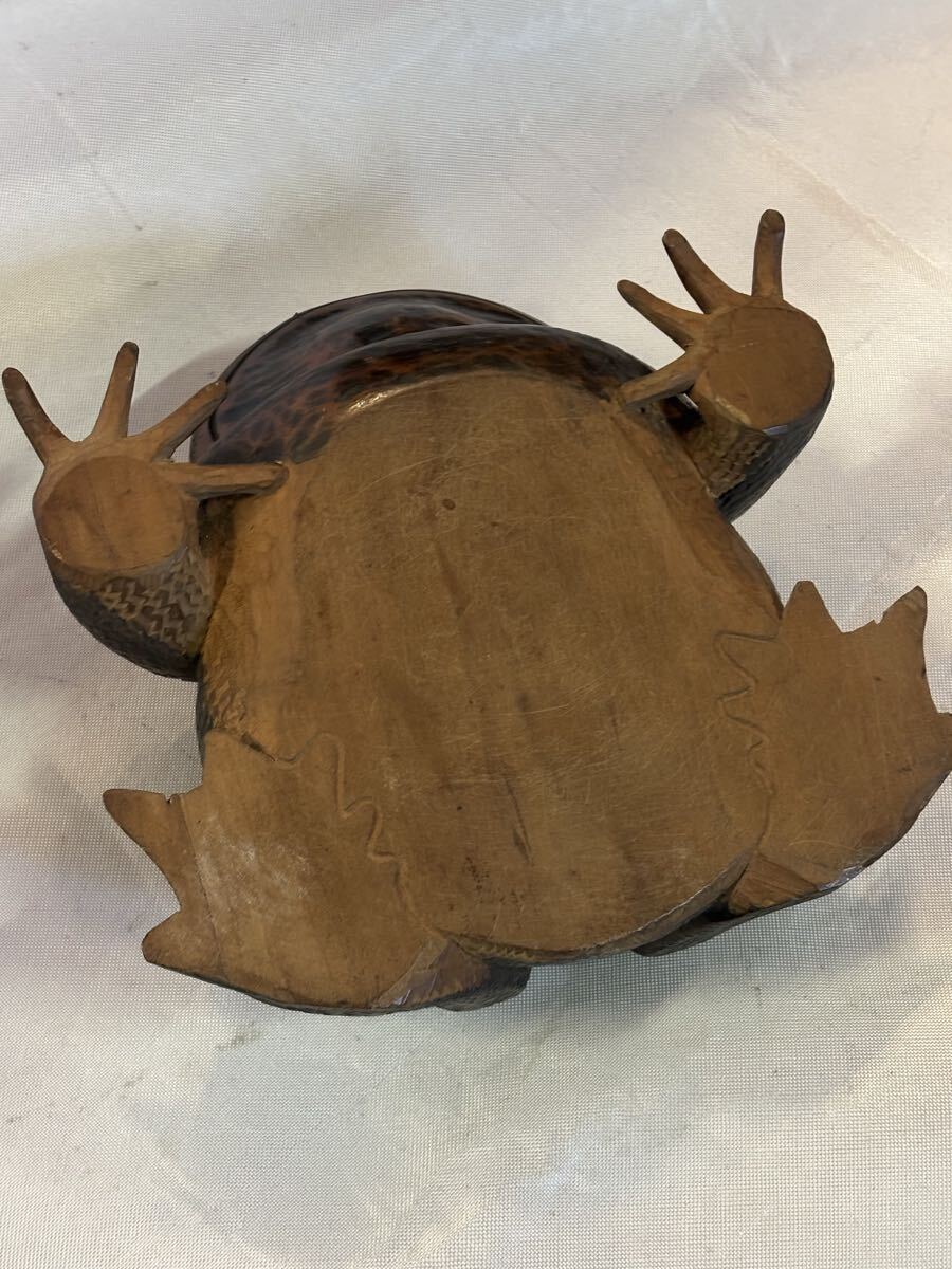 | 一刀彫 かえる/ 置物/ 蛙/ カエル/木製/コレクション/インテリア/ オブジェ/木彫り/工芸☆SA4943☆ |