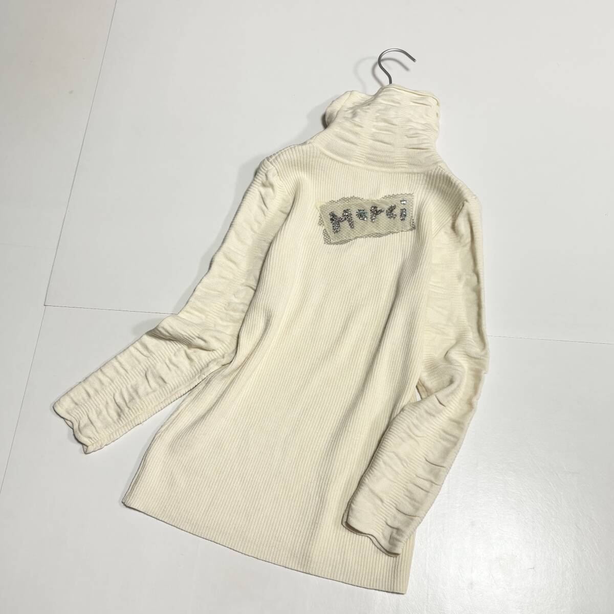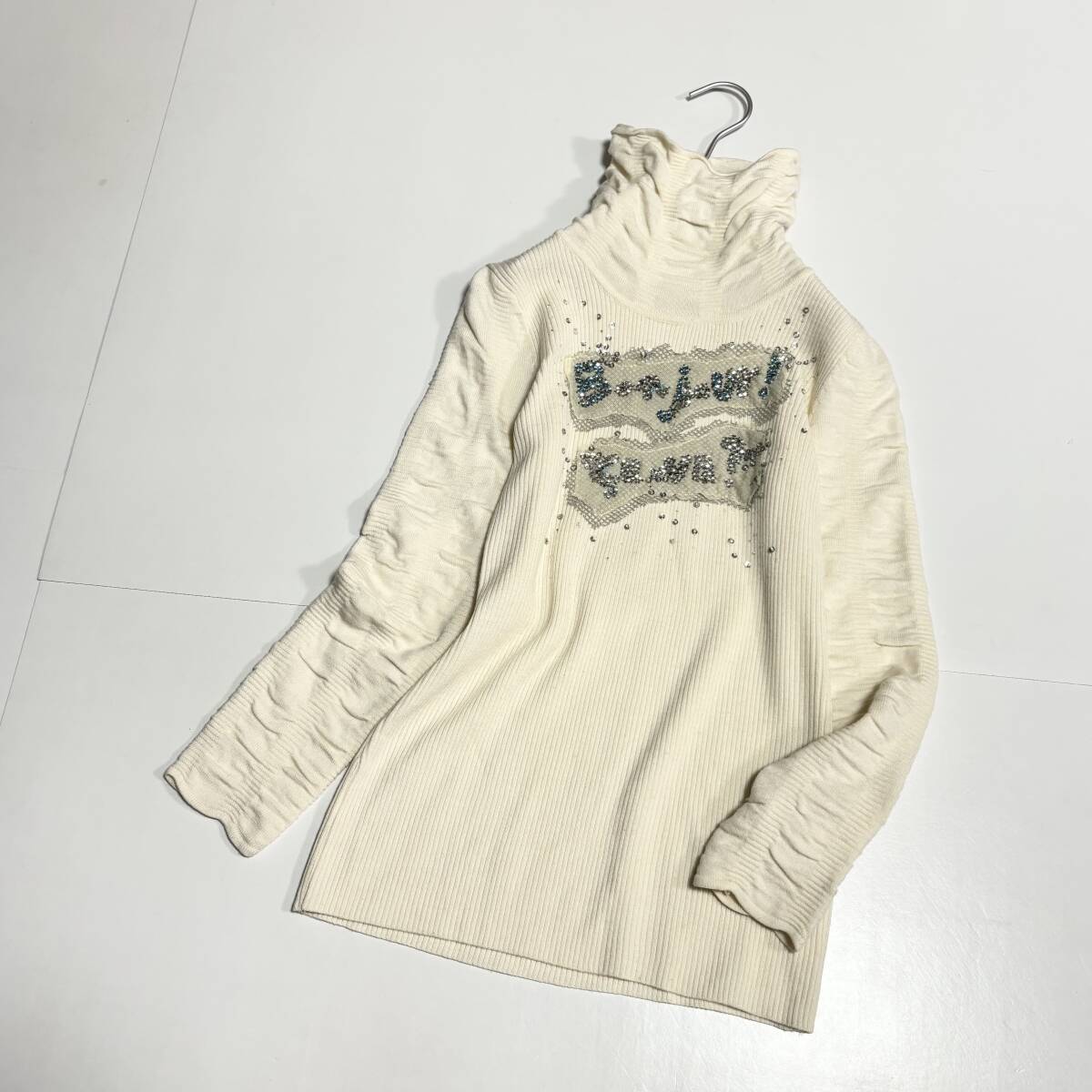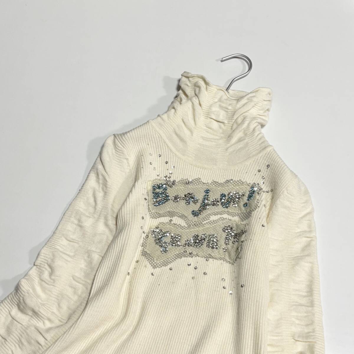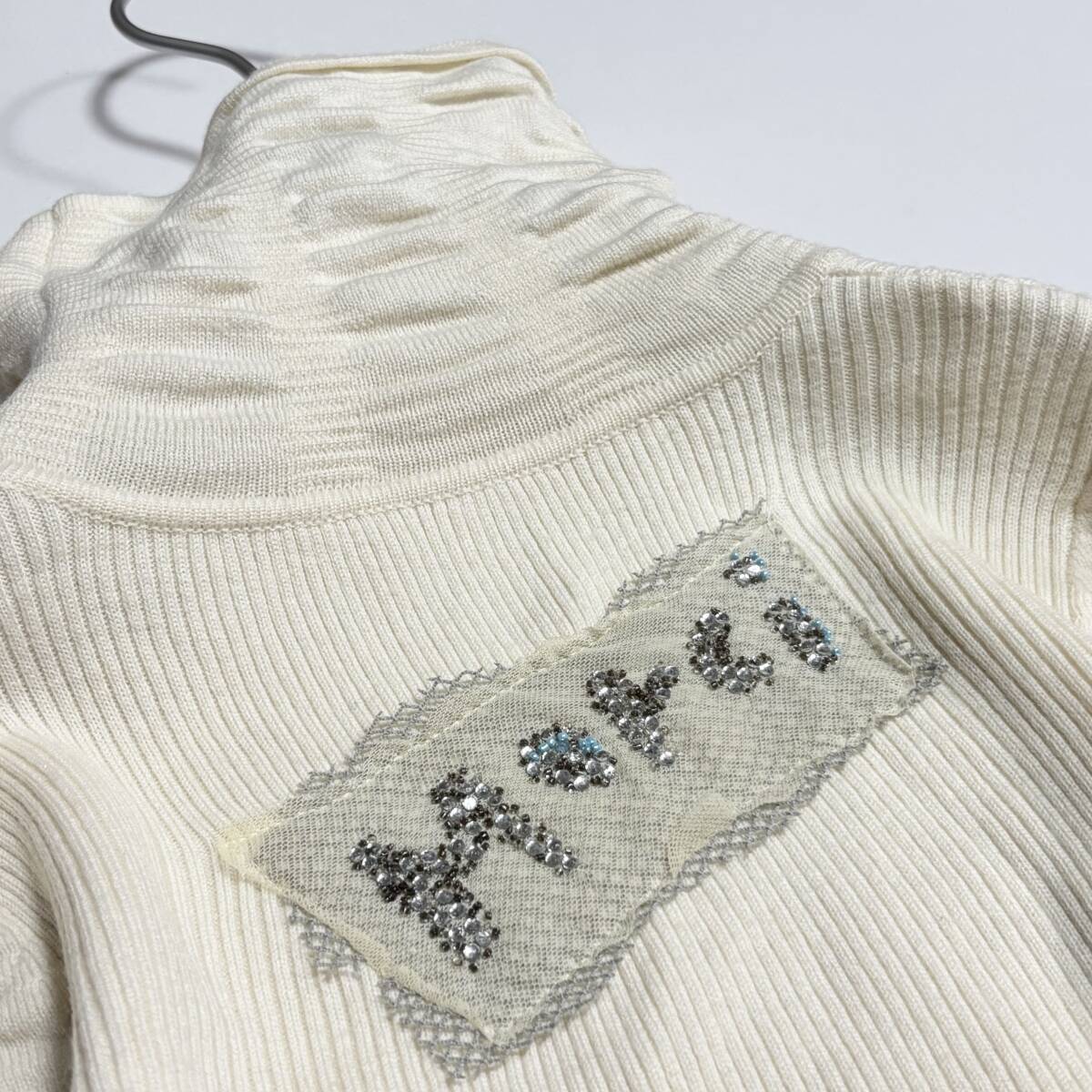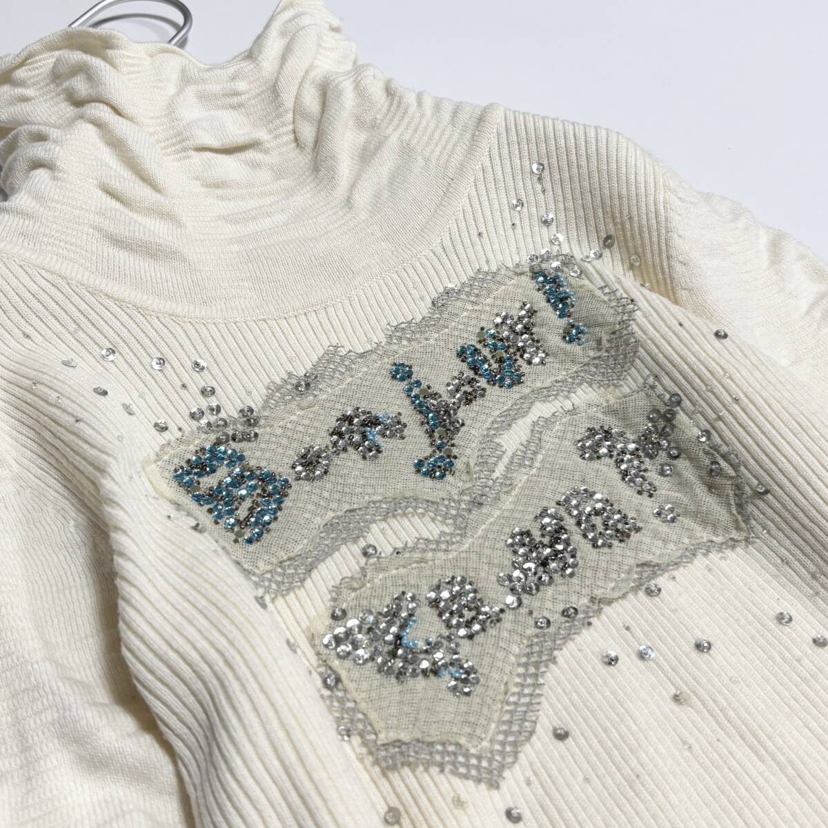 CICCARELLO シカレロ サイズM // ウールミックス オフホワイト系ビーズ装飾 ロングニット ニットチュニック ⑥