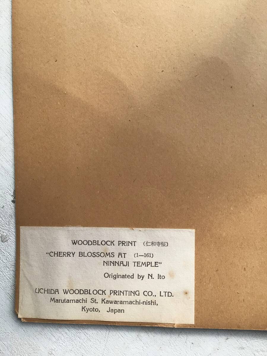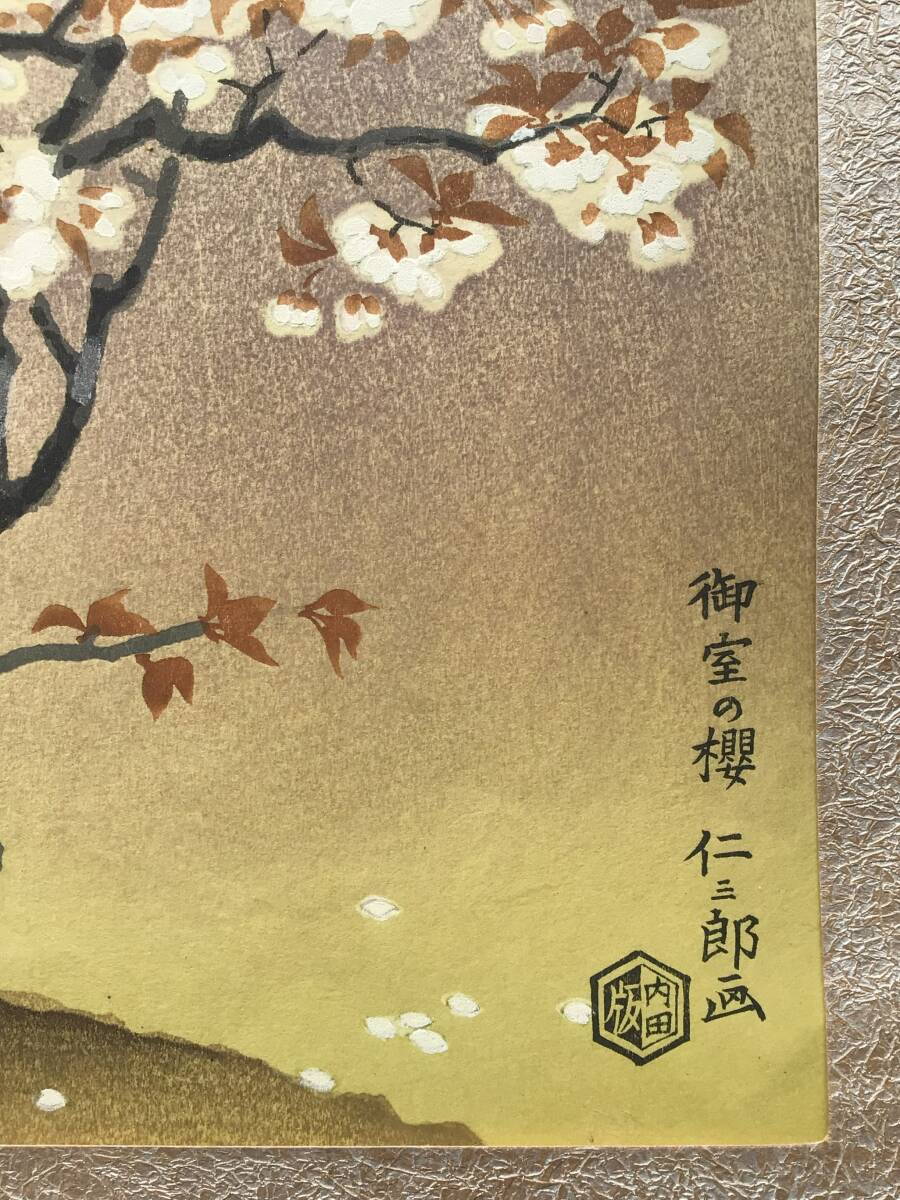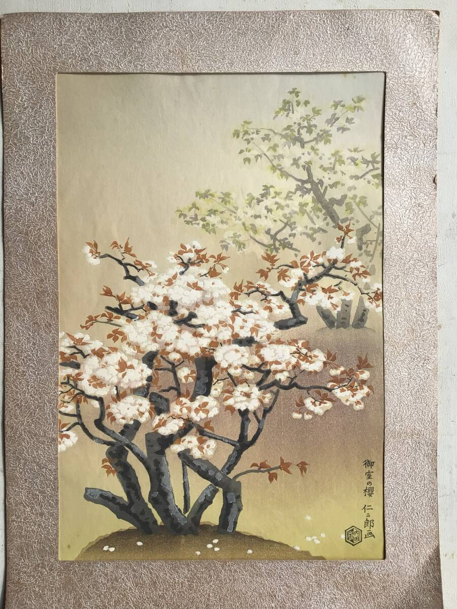【真作】A伊藤仁三郎『御室の桜』仁和寺桜 内田版 手摺木版画 創作版画 京都名所 土田麦僊