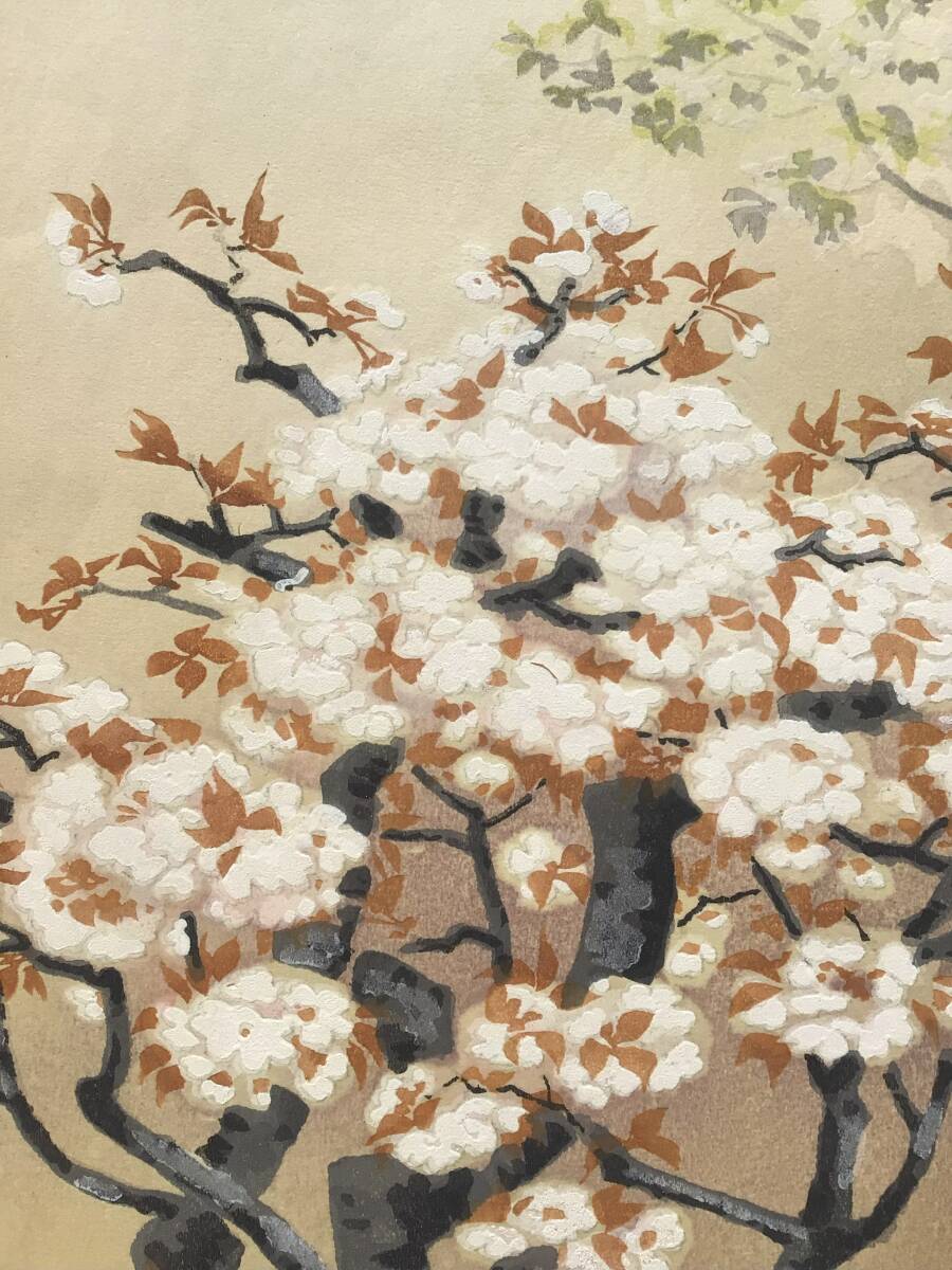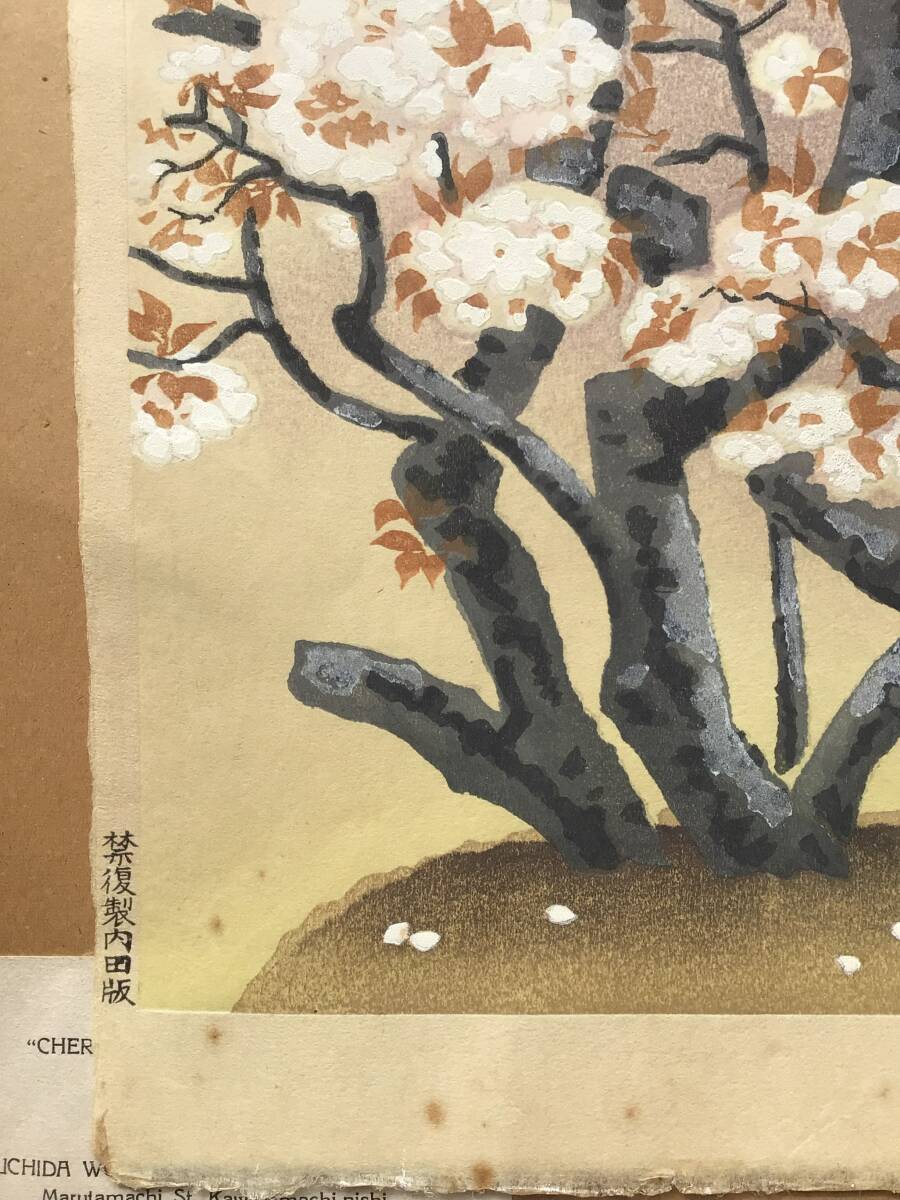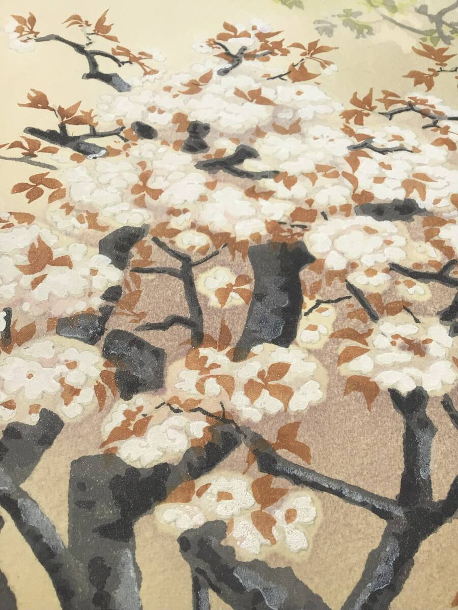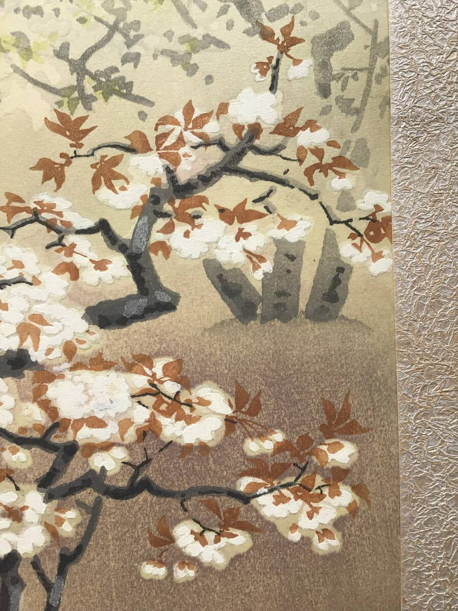 【真作】A伊藤仁三郎『御室の桜』仁和寺桜 内田版 手摺木版画 創作版画 京都名所 土田麦僊