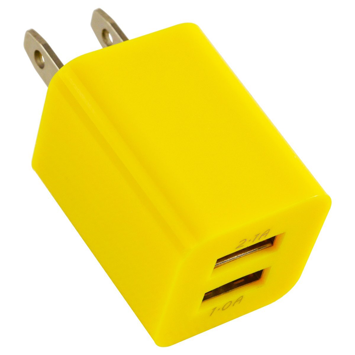 スマートフォン 充電器 ACアダプター USBポート 2口 2.1A 黄色 iphone スマホ 充電 USB2ポート コンセント コネクター