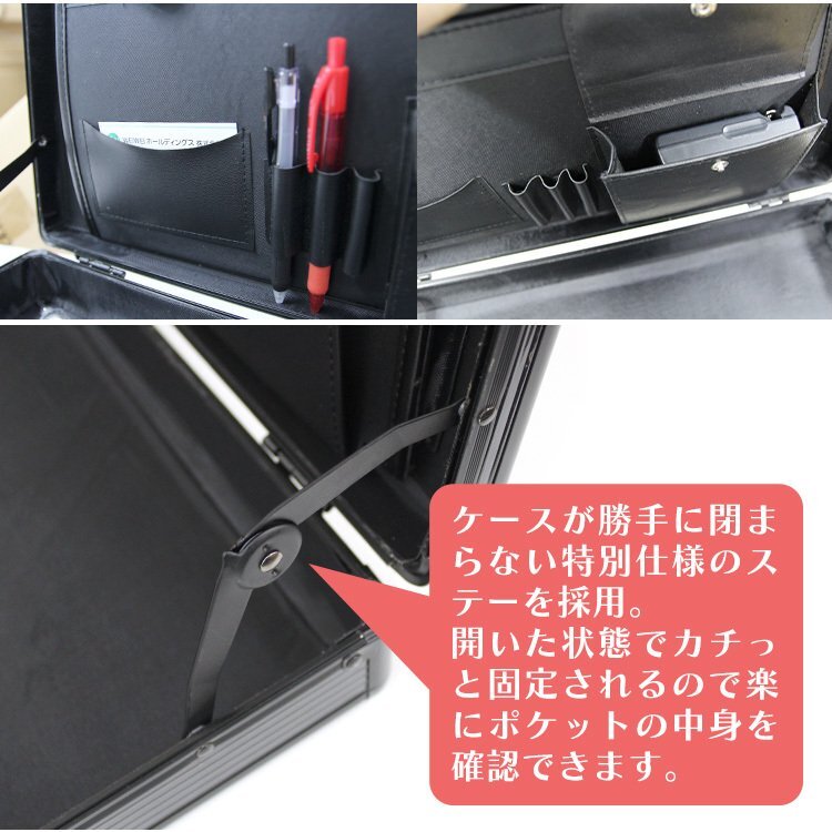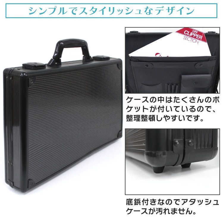 軽量で頑丈、抜群の容量を誇るアルミアタッシュケース。 シンプルなデザインと軽量で丈夫なボディでシーンを選ばず大活躍! ポケットも充実たっぷり収納。 盗難防止用の鍵も付いていて、出張など長時間の移動にもしっかり対応します。 ノートPC・書類・メディア・貴重品の収納等、多彩な用途にご利用頂けます! ●仕様 サイズ(約): ・外寸:437X350X82mm ・内寸:426×309×46mm 重量(約)1.8Kg 材質:アルミニウム合金、PVC、ABS樹脂他 ●注意事項 ※本体にアルミ素材・MDF素材を使用している為、内張りを接着で固定しています。輸送中の振動などにより多少接着面が浮いてしまう事がございます。軽く手で押さえられると接着力を回復できますので、予めご了承願います。 ※アルミニウム合金はフレームのみでパネル面は使用しておりません。 ▼アタッシュケース カラー一覧▼ ■ ブラック ■ シルバー |