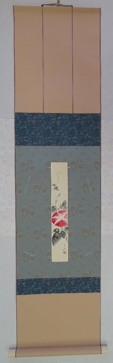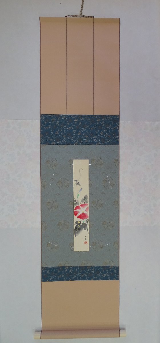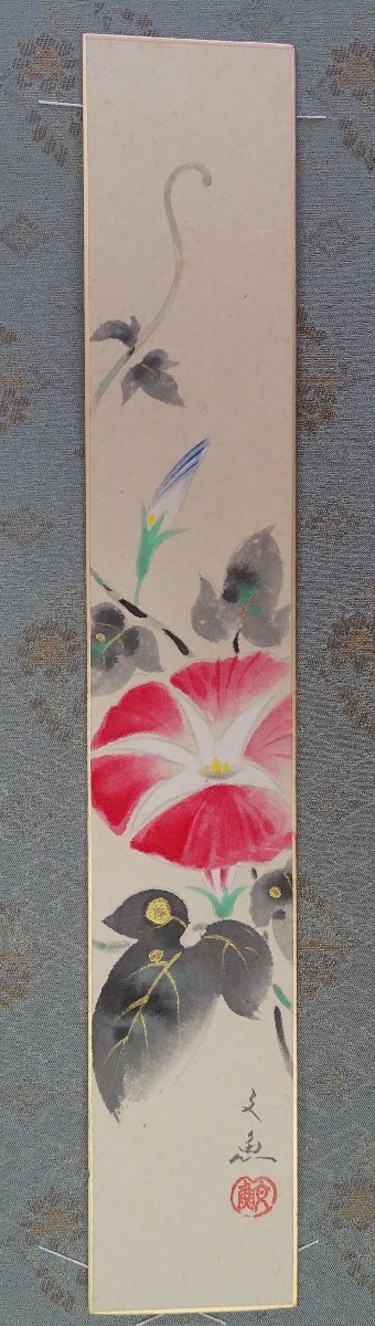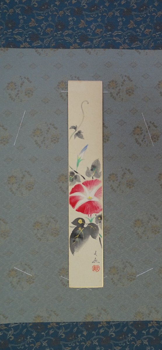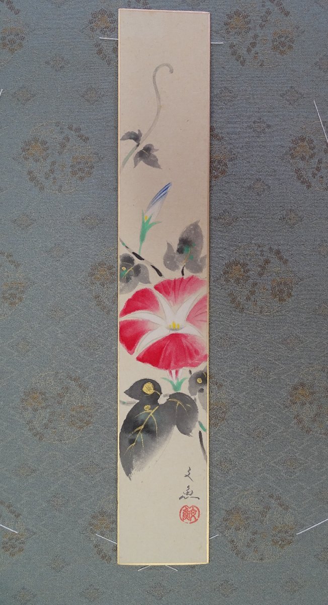 ・作者: ・中谷 文魚 ・画題:朝顔 ・技法: 色紙絵直筆・色紙掛け軸 NO-R6-3-13.8