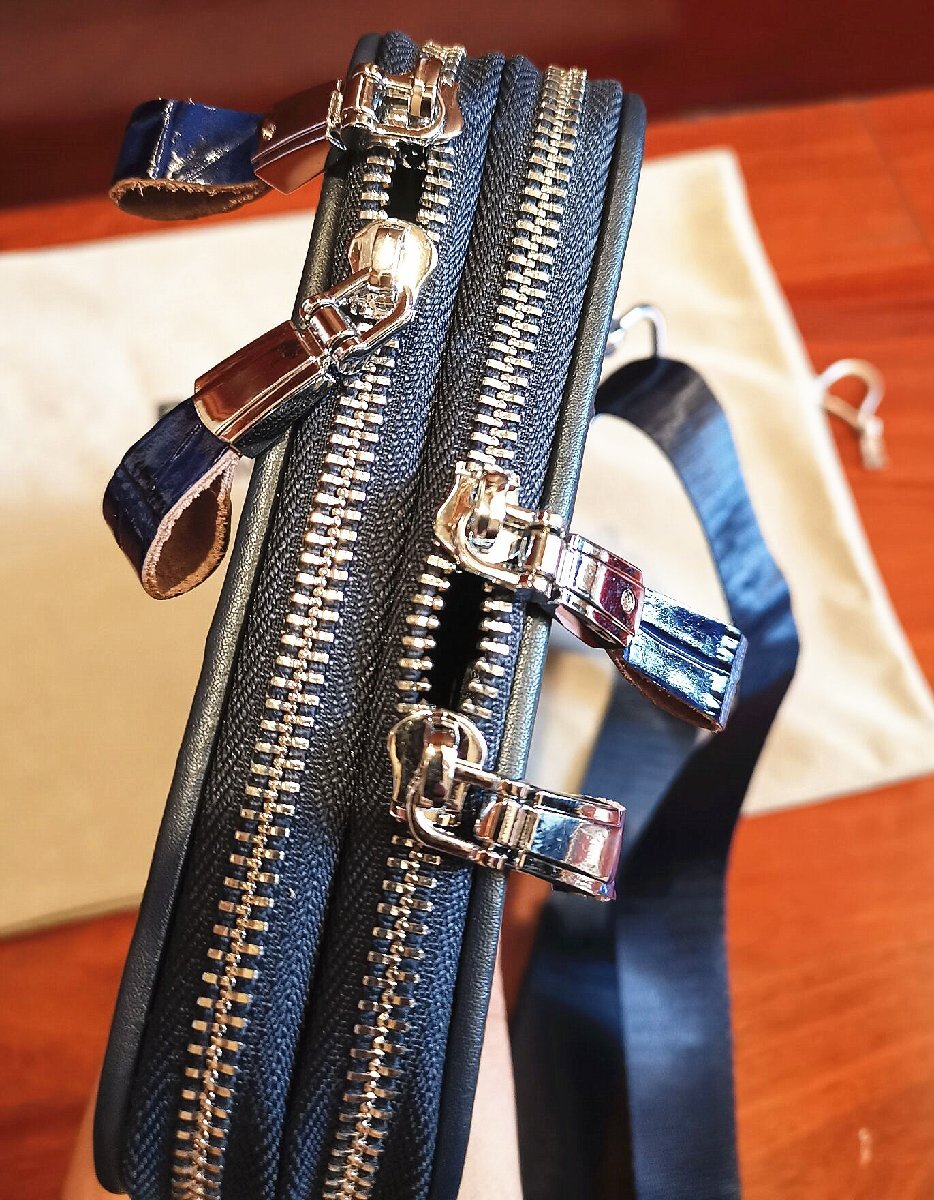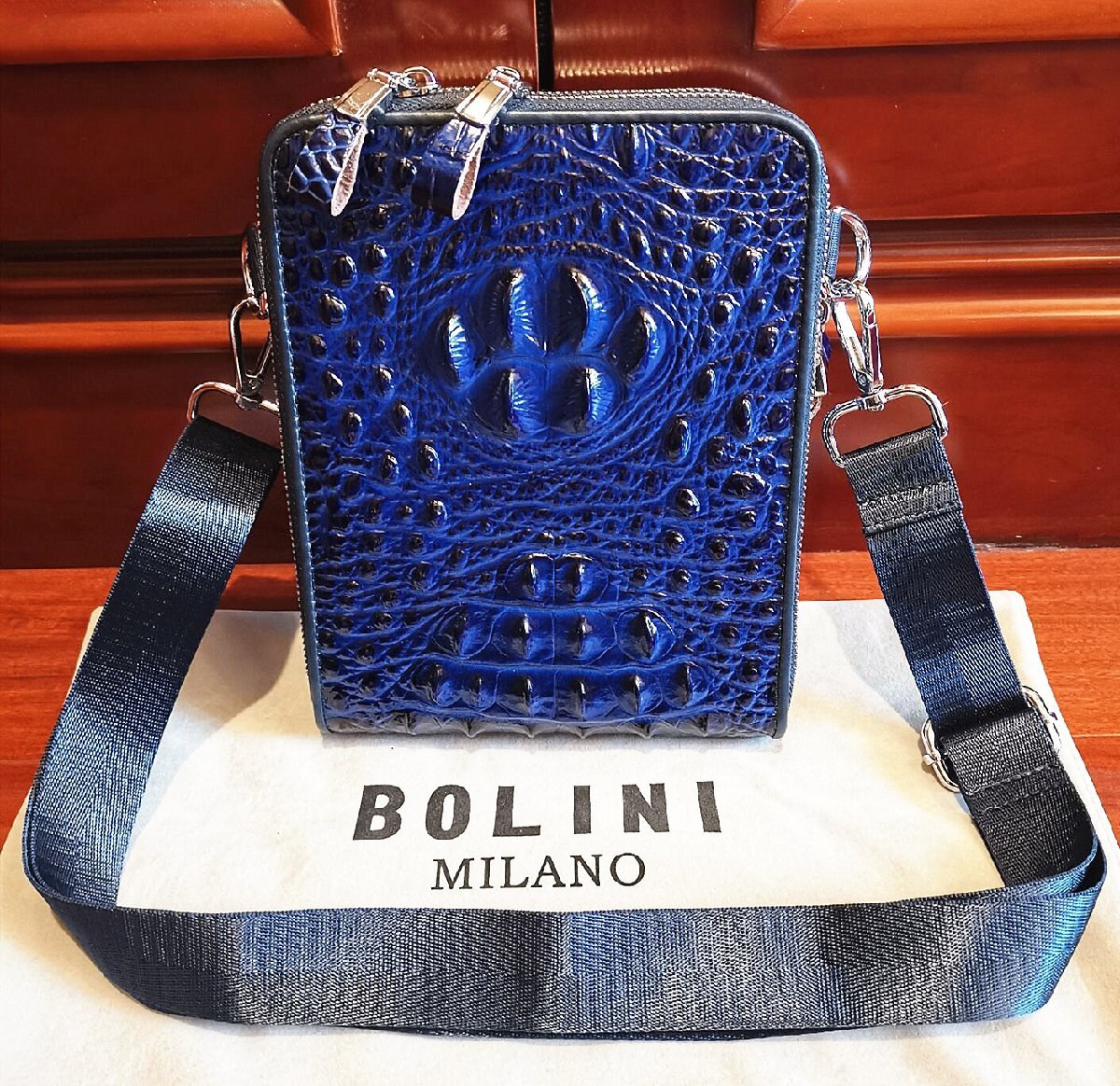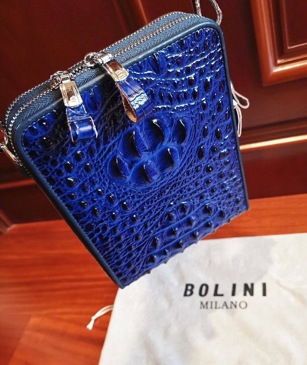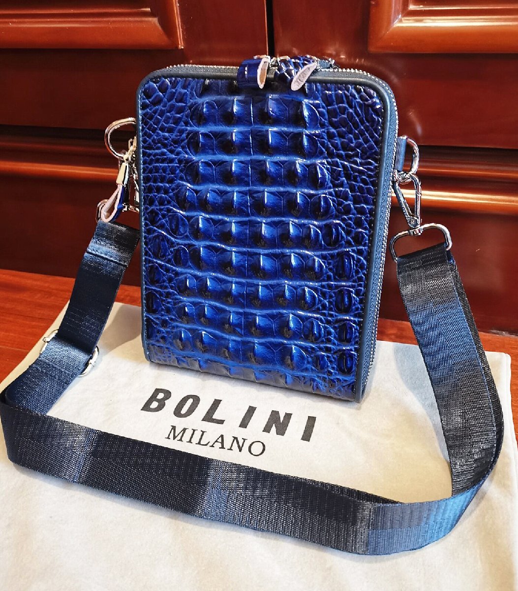逸品*16万◆イタリア・ミラノ発*BOLINI/ボリニ・最上級牛革・クロコダイル*ショルダーバッグ/リュックサック・紺