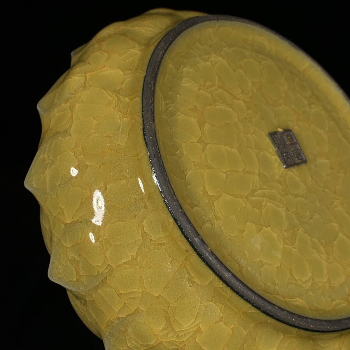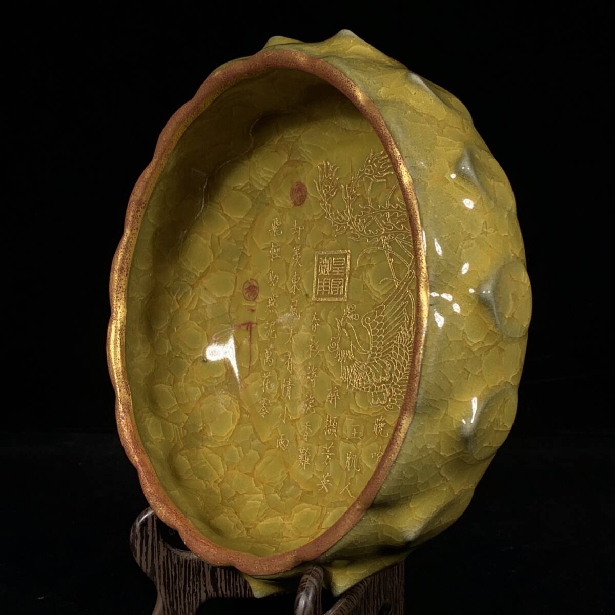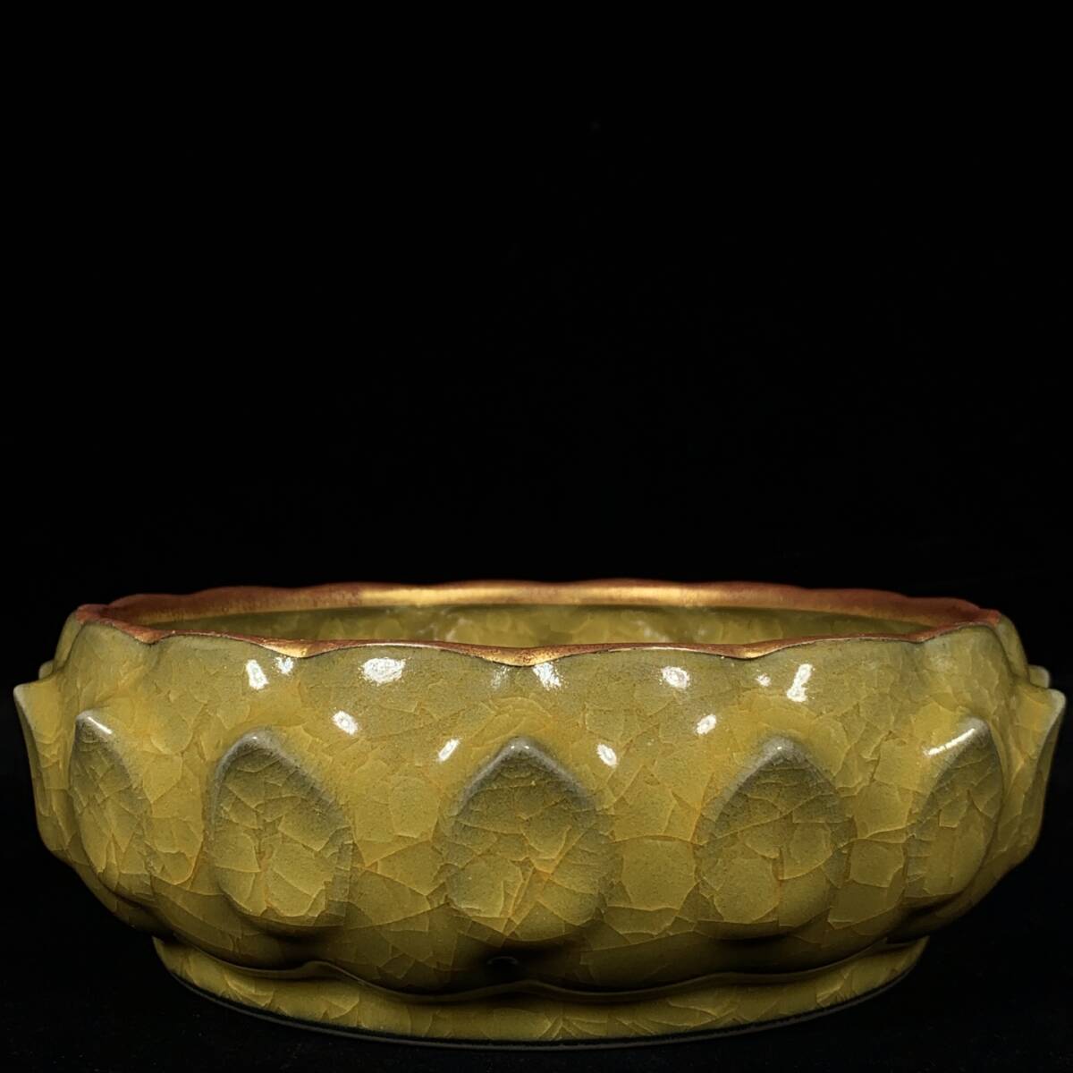 館蔵 宋時代 官窯 黄釉 包口 銘文 鳳紋 蓮花洗 古陶瓷 陶磁器 中国古美術 古美味 蔵出