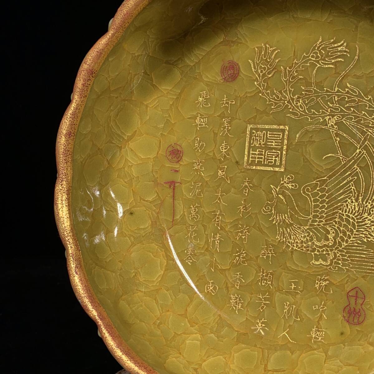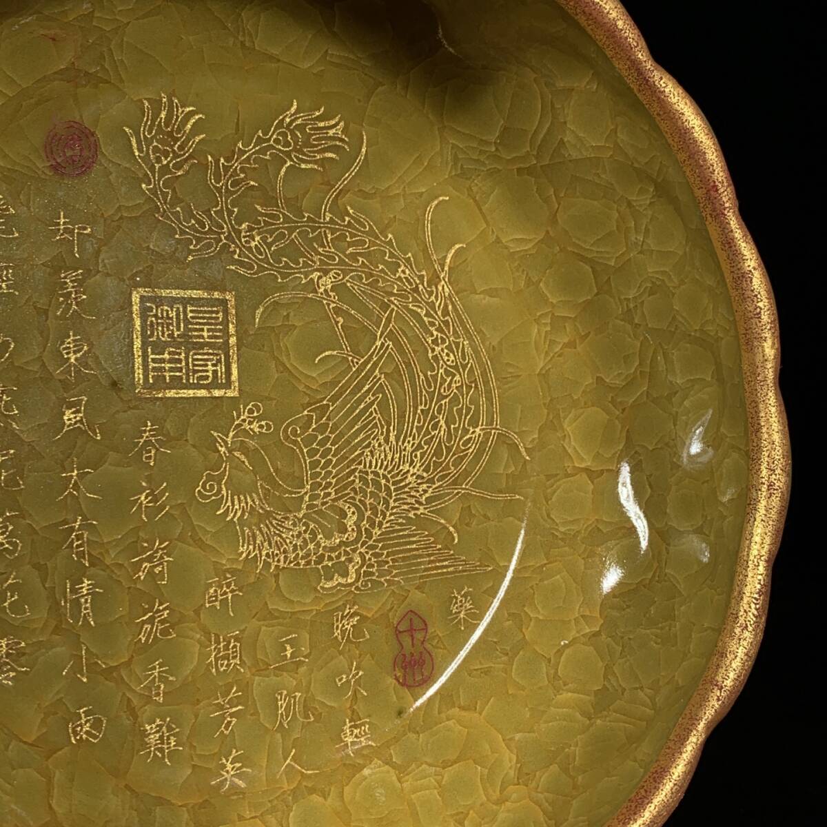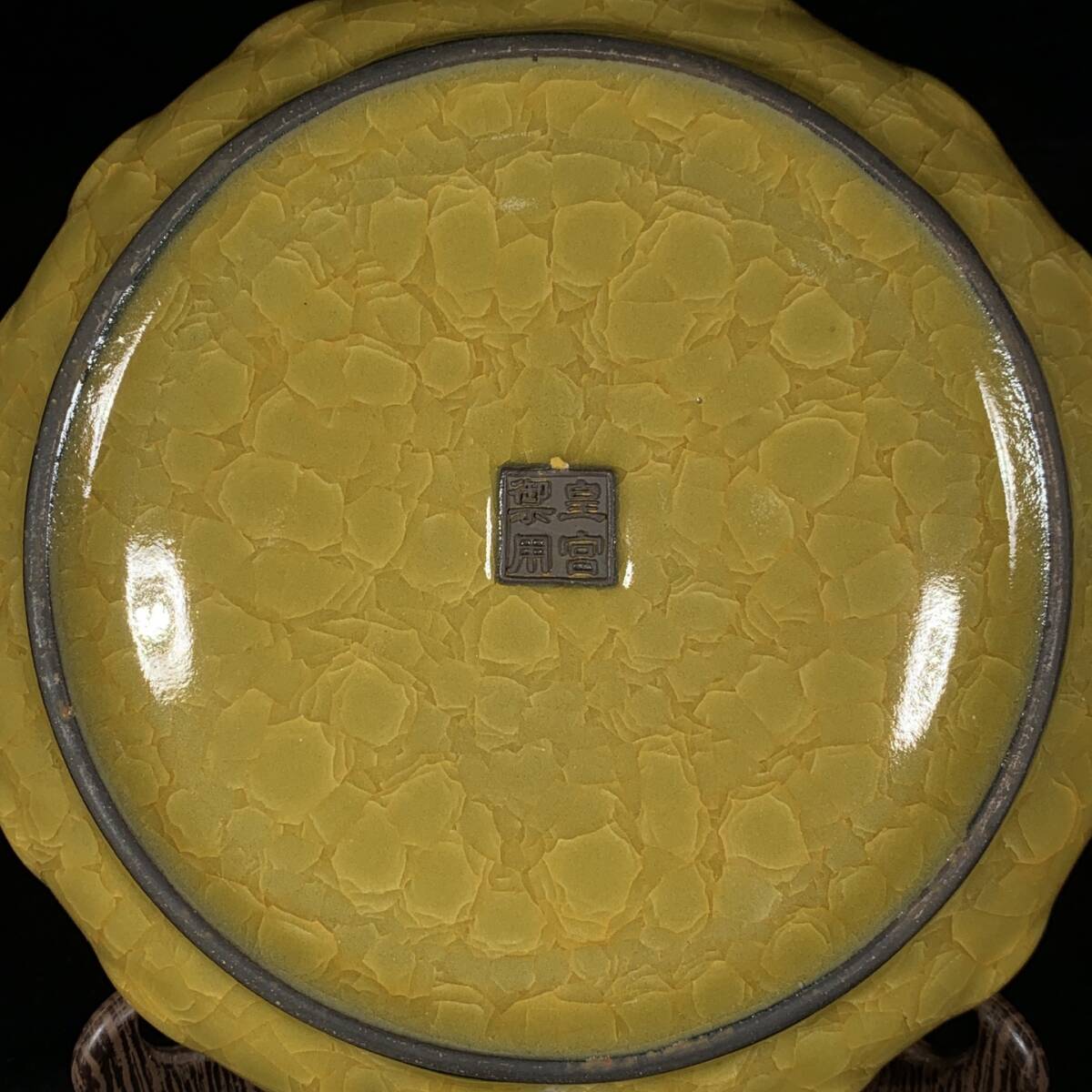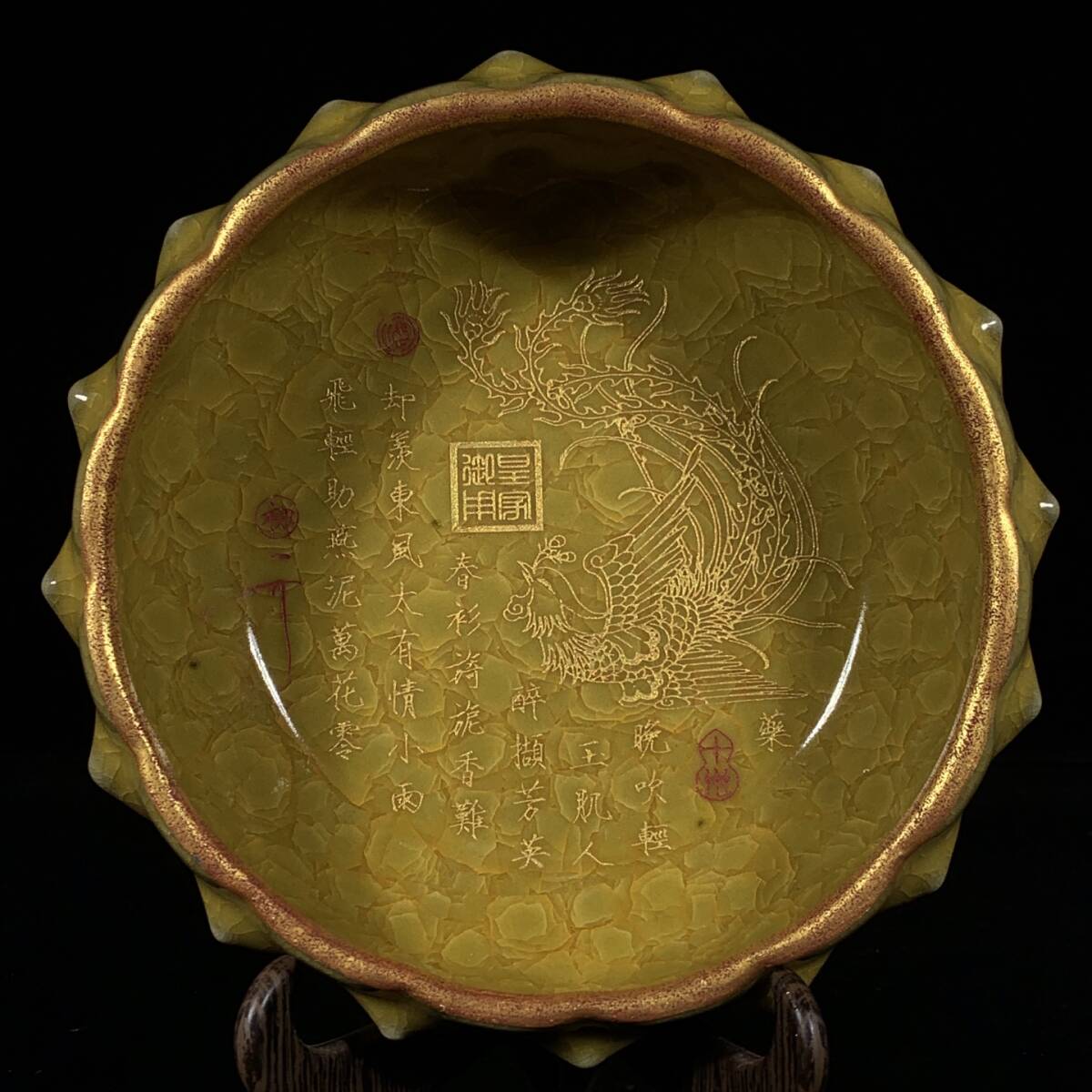 館蔵 宋時代 官窯 黄釉 包口 銘文 鳳紋 蓮花洗 古陶瓷 陶磁器 中国古美術 古美味 蔵出