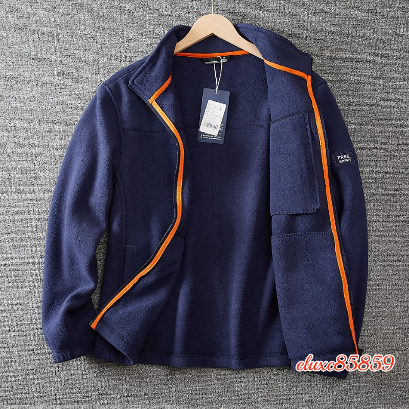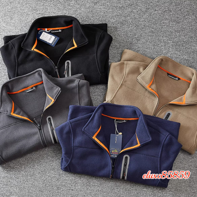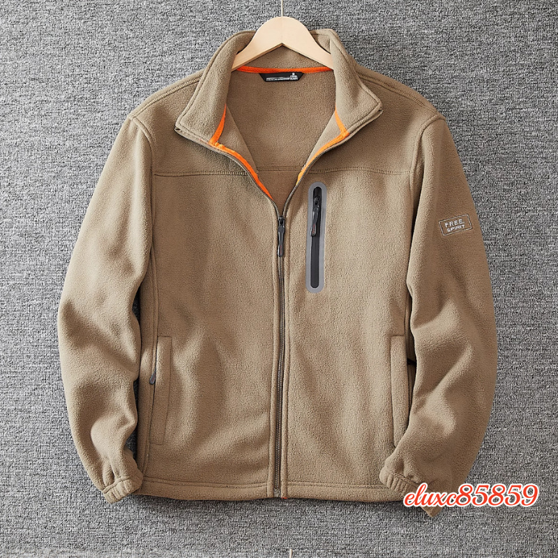 新品 メンズ フリース ジャケット スタンドカラー アウトドア 防寒 秋冬 おしゃれ 軽量 厚手 立襟 ジップアップ カーキ サイズ選択可L