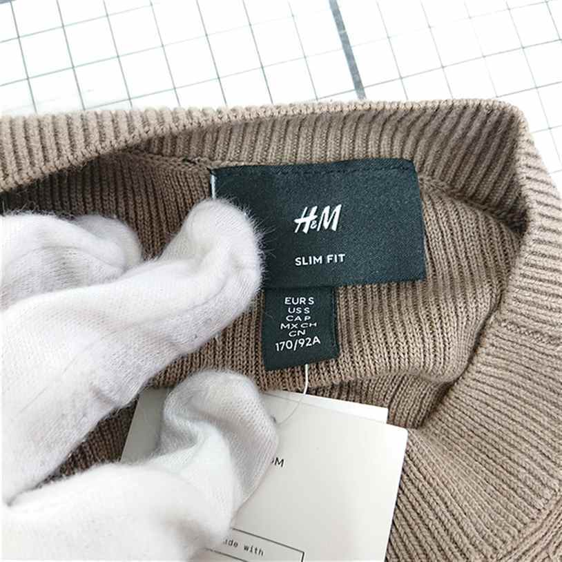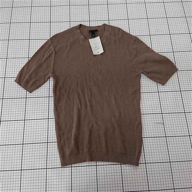 ⊂ 未使用 ⊂ 未使用 エイチアンドエム H&M SLIM FIT リブニット半袖セーター ブラウン系 メンズ S E