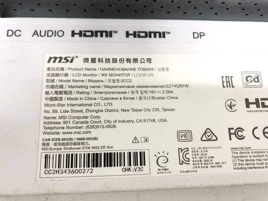 MSI G274QRFW 27型液晶モニター■ジャンク品