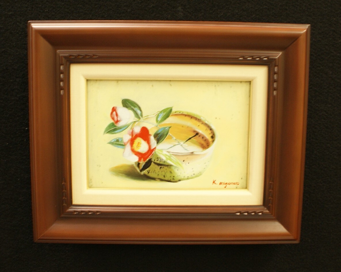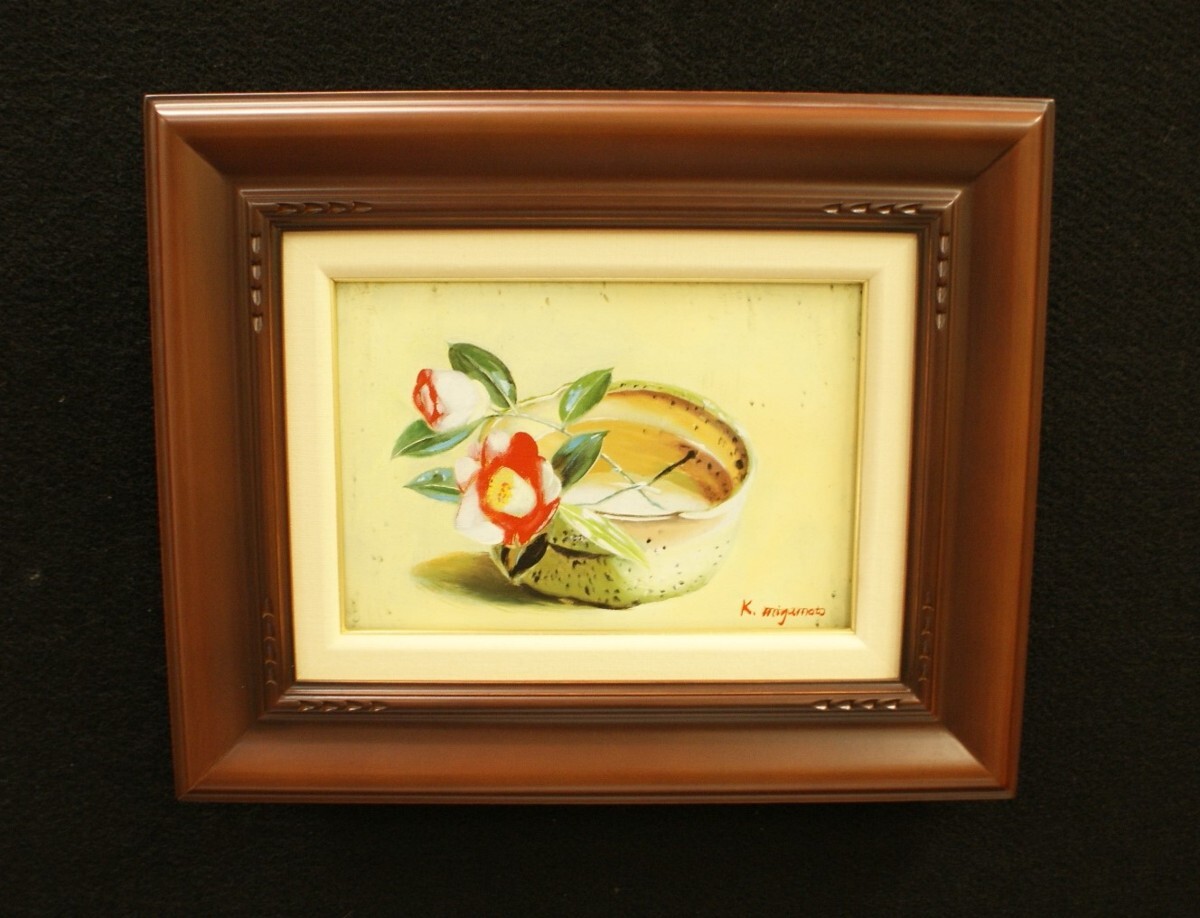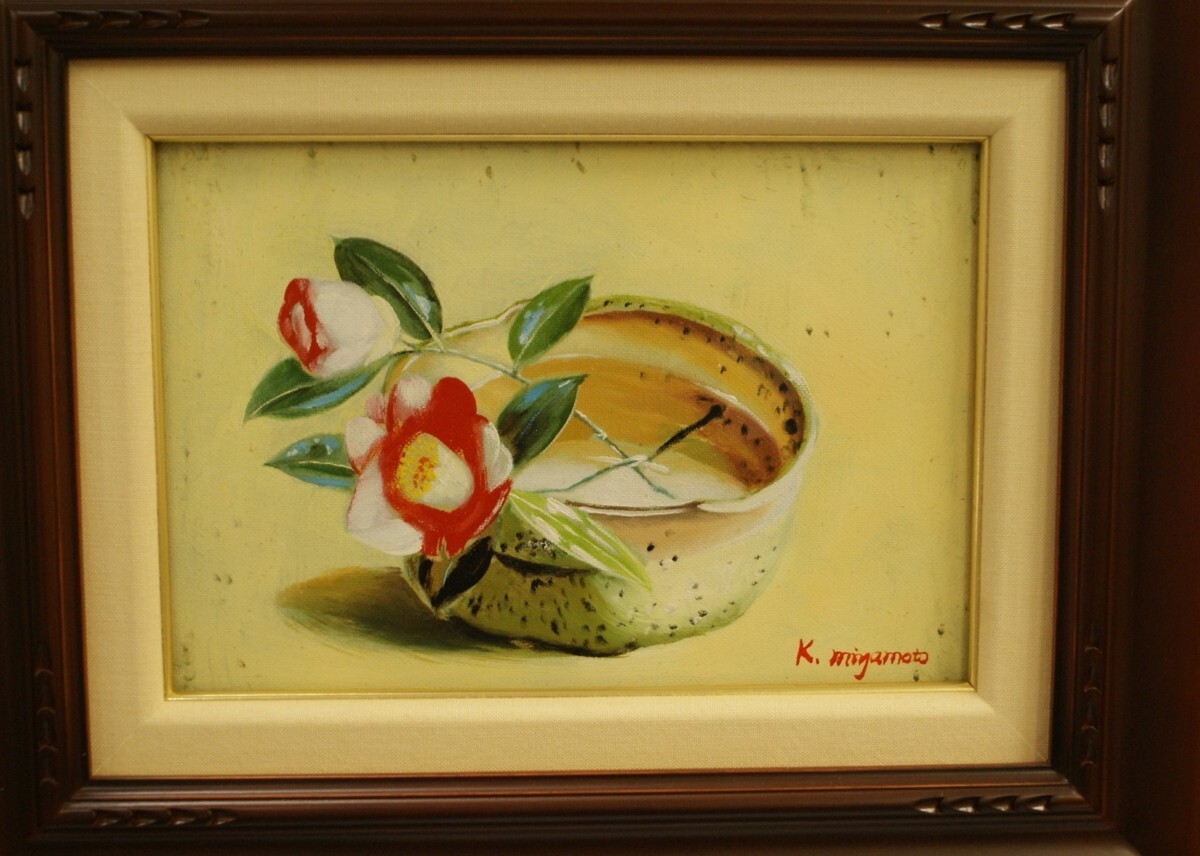 ・作者名: 宮本京子 ・画題: 志野焼と椿 ・技法:油彩画 (原画)〈160〉(A1-HIO-R4-6-22-25.8)