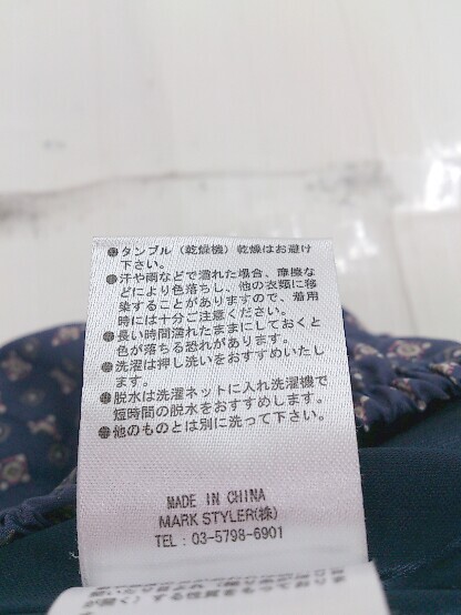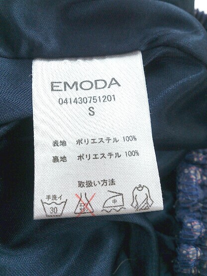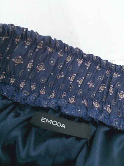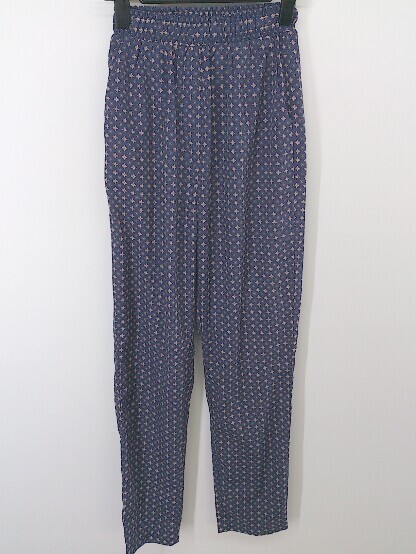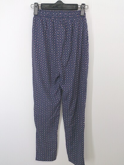 ◇ EMODA エモダ サテン調 総柄 テーパードパンツ サイズS ネイビー マルチ レディース E
