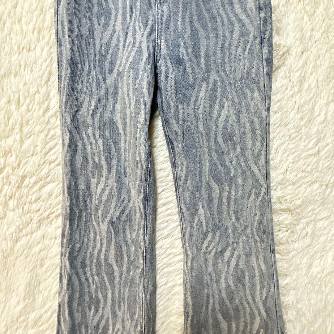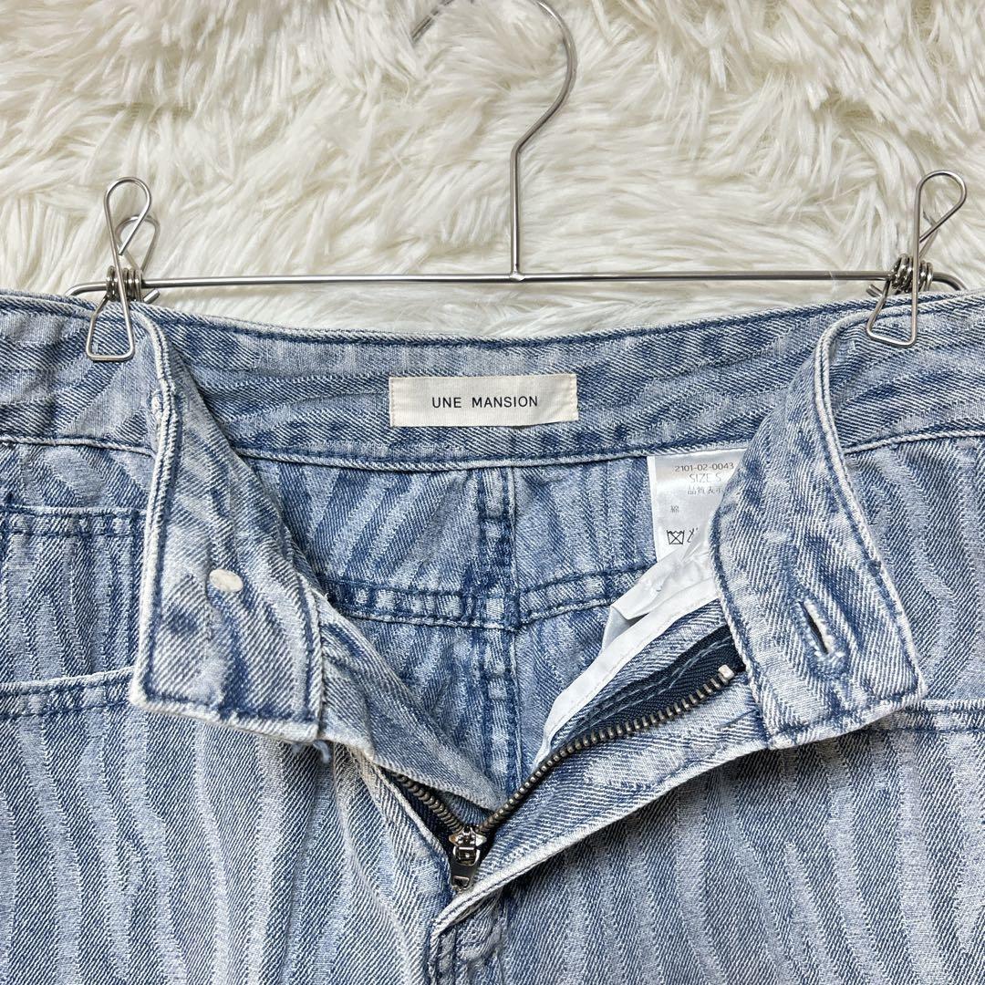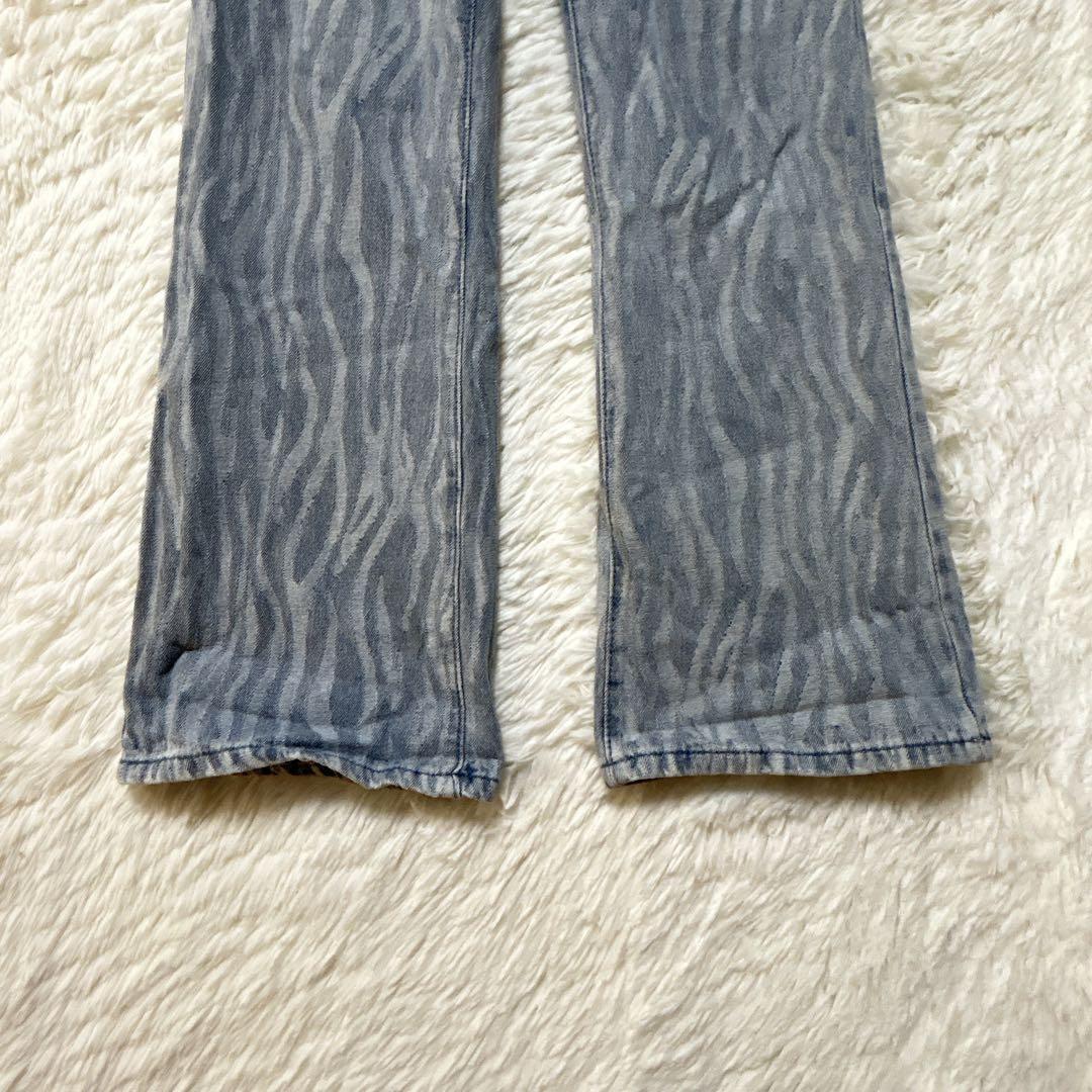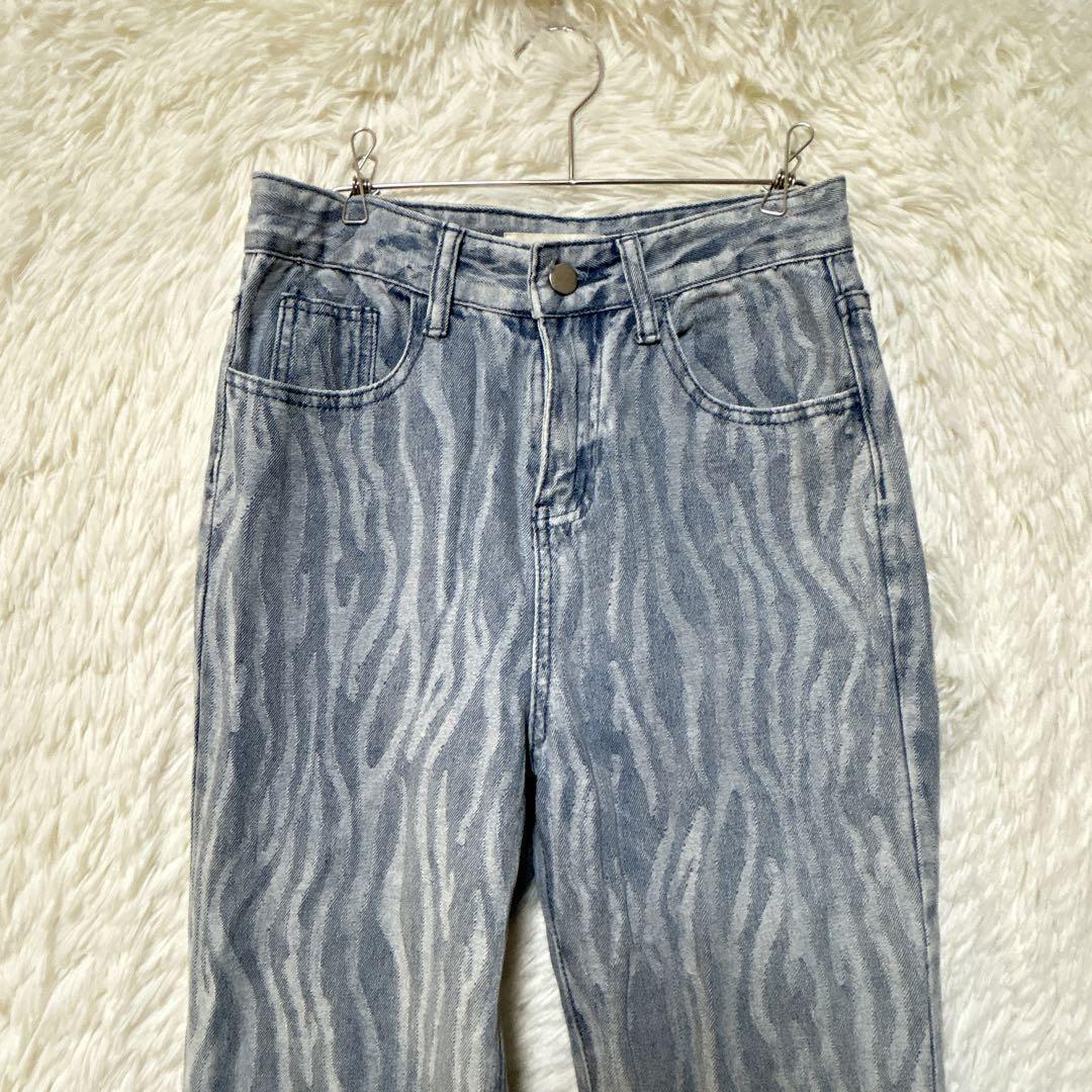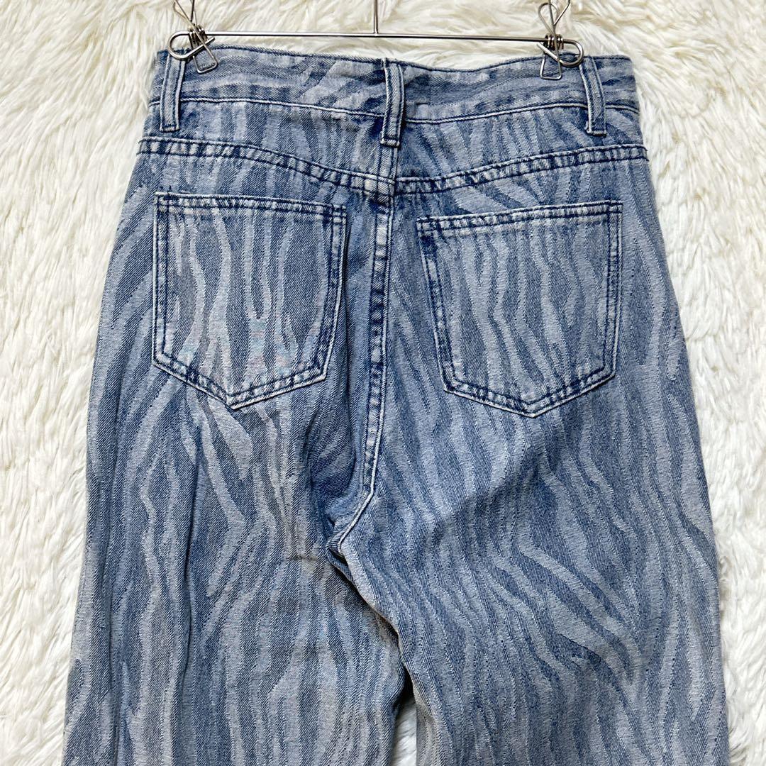 ユヌマンション デニム ハイライズ ストレート S ライトブルー ゼブラ柄風 FAAE85