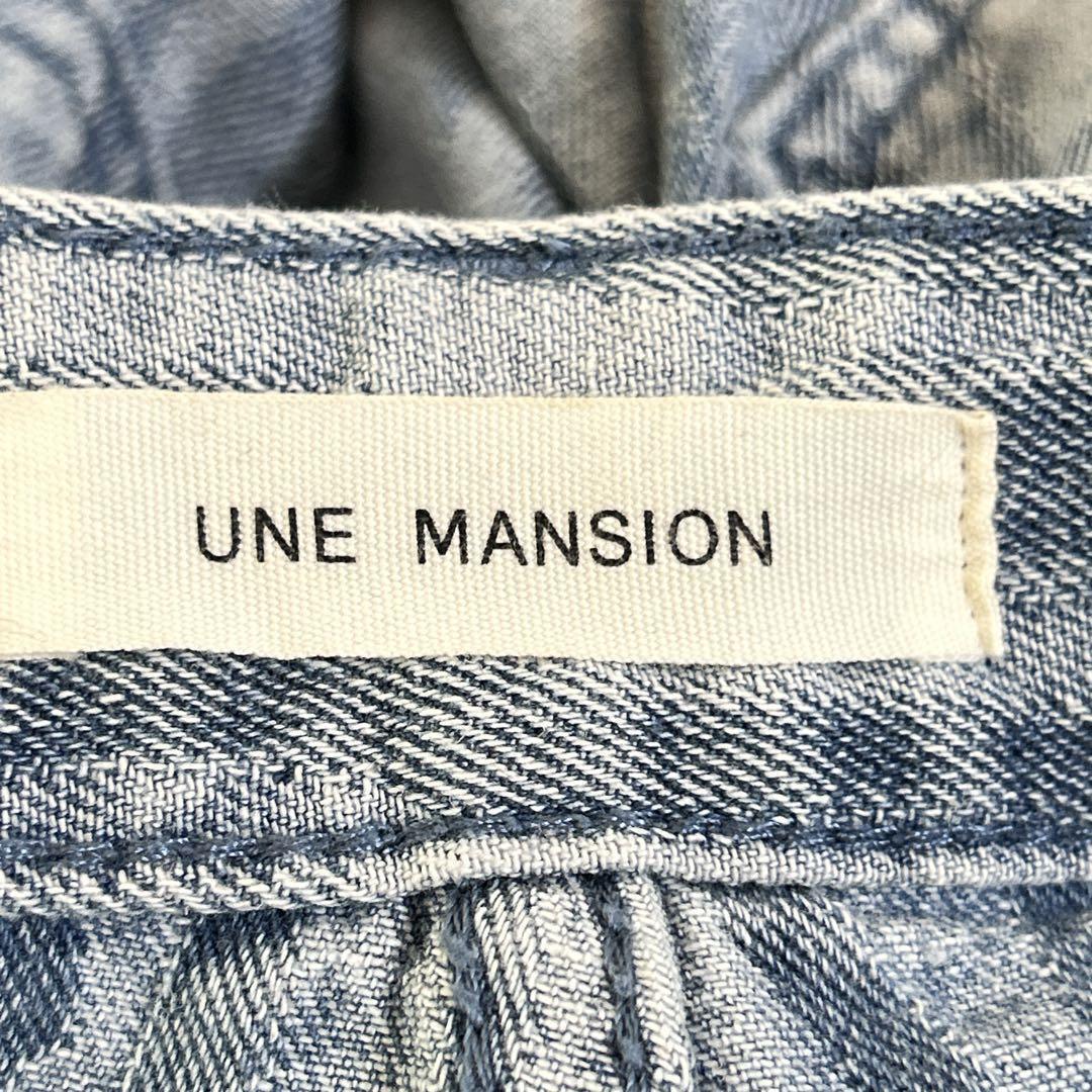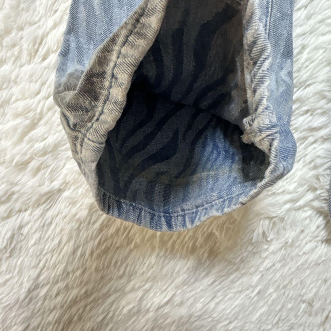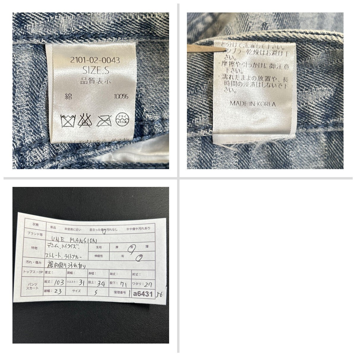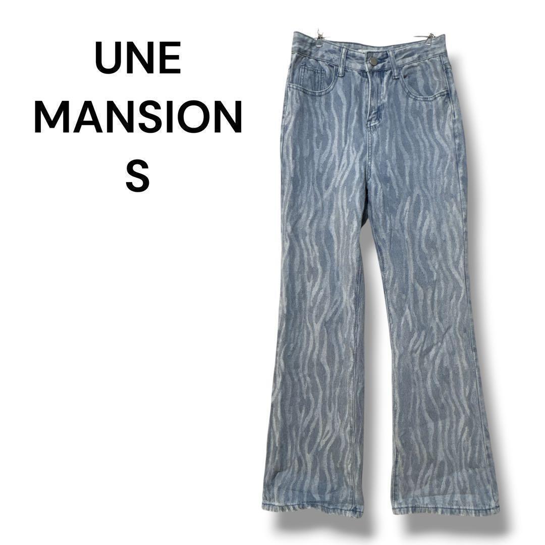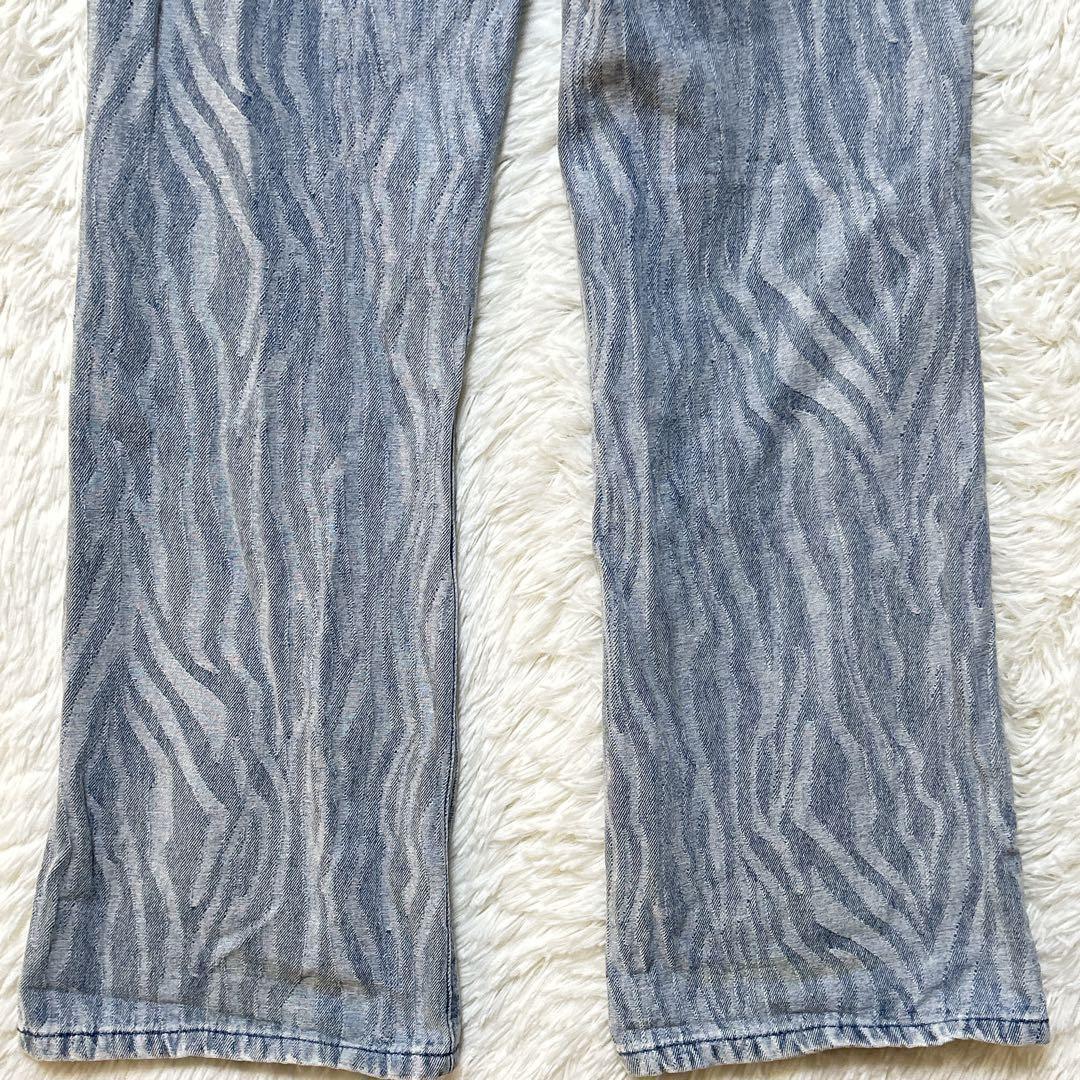 ユヌマンション デニム ハイライズ ストレート S ライトブルー ゼブラ柄風 FAAE85