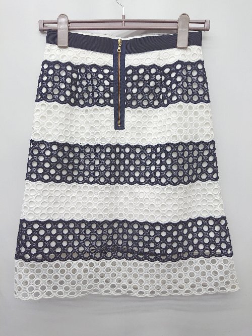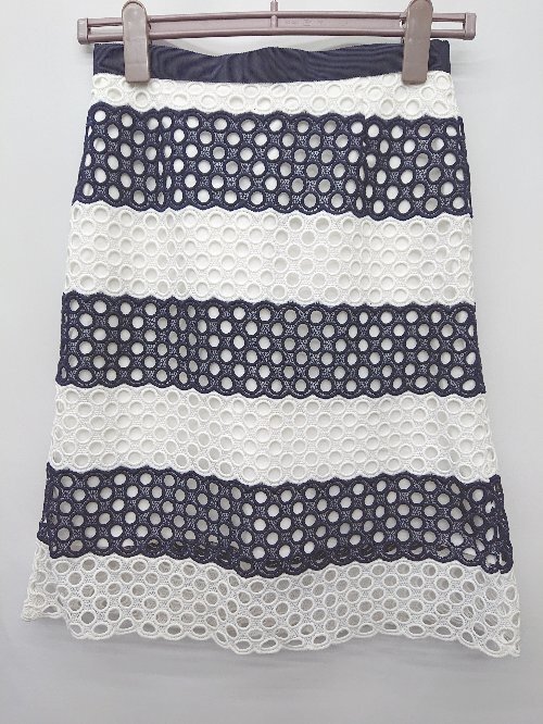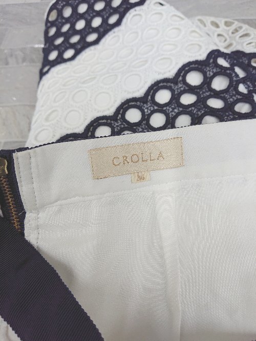 ◇ ⊂ crolla クローラ ドット 水玉 膝丈 タイト スカート サイズ36 ホワイト ネイビー レディース P
