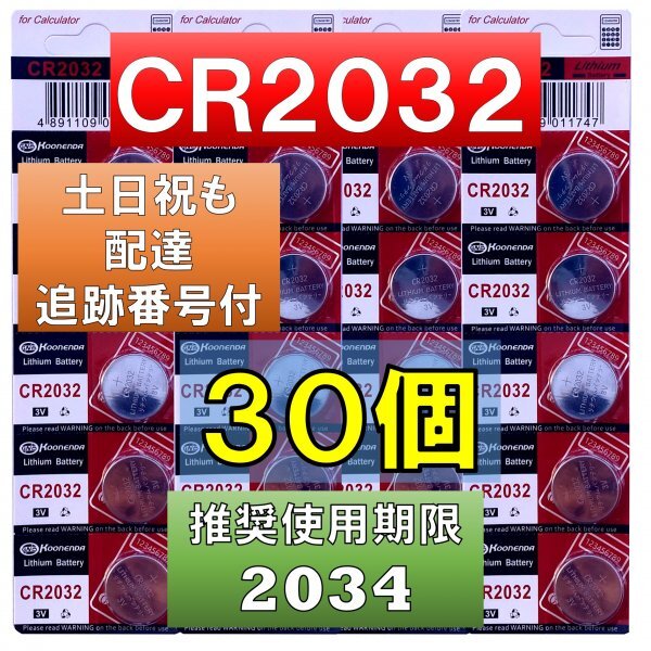 追跡番号 土日祝日配達 CR2032 リチウムボタン電池 30個