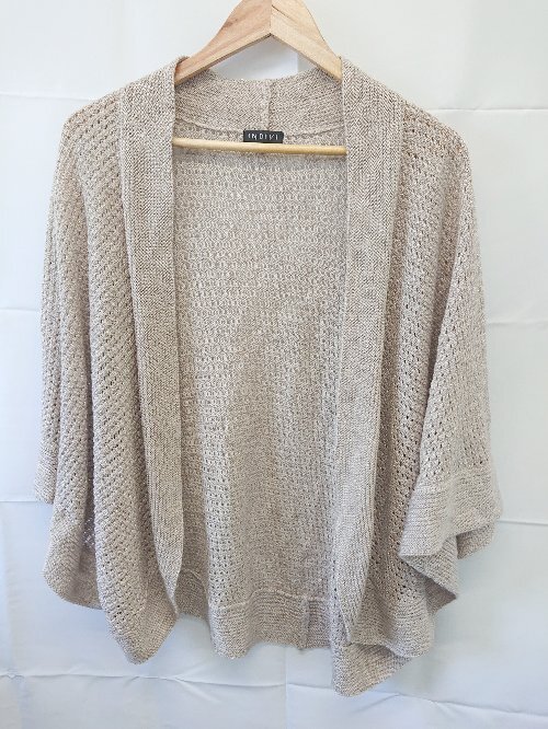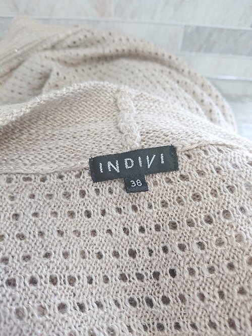 ◇ Θ INDIVI インディヴィ ポンチョ風 メッシュ ラメ 長袖 カーディガン サイズ38 グレージュ系 レディース E