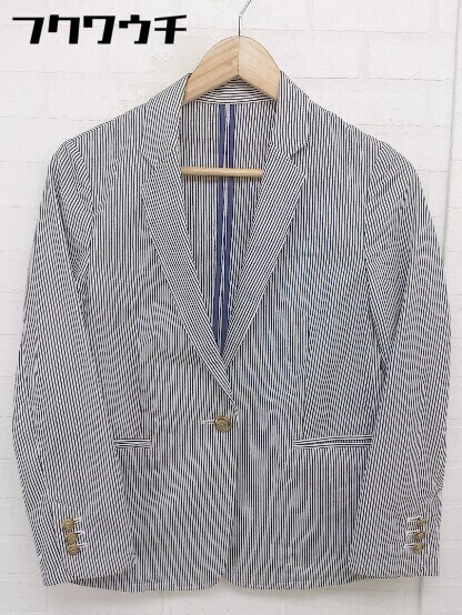 ◇ garde Robe nano universe ストライプ 薄手 テーラード ジャケット サイズ38 ブラック系 ホワイト レディース