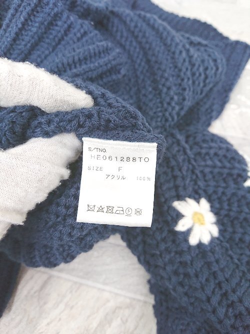 ◇ Heather ヘザー 長袖 ニット カーディガン サイズF ネイビー レディース P