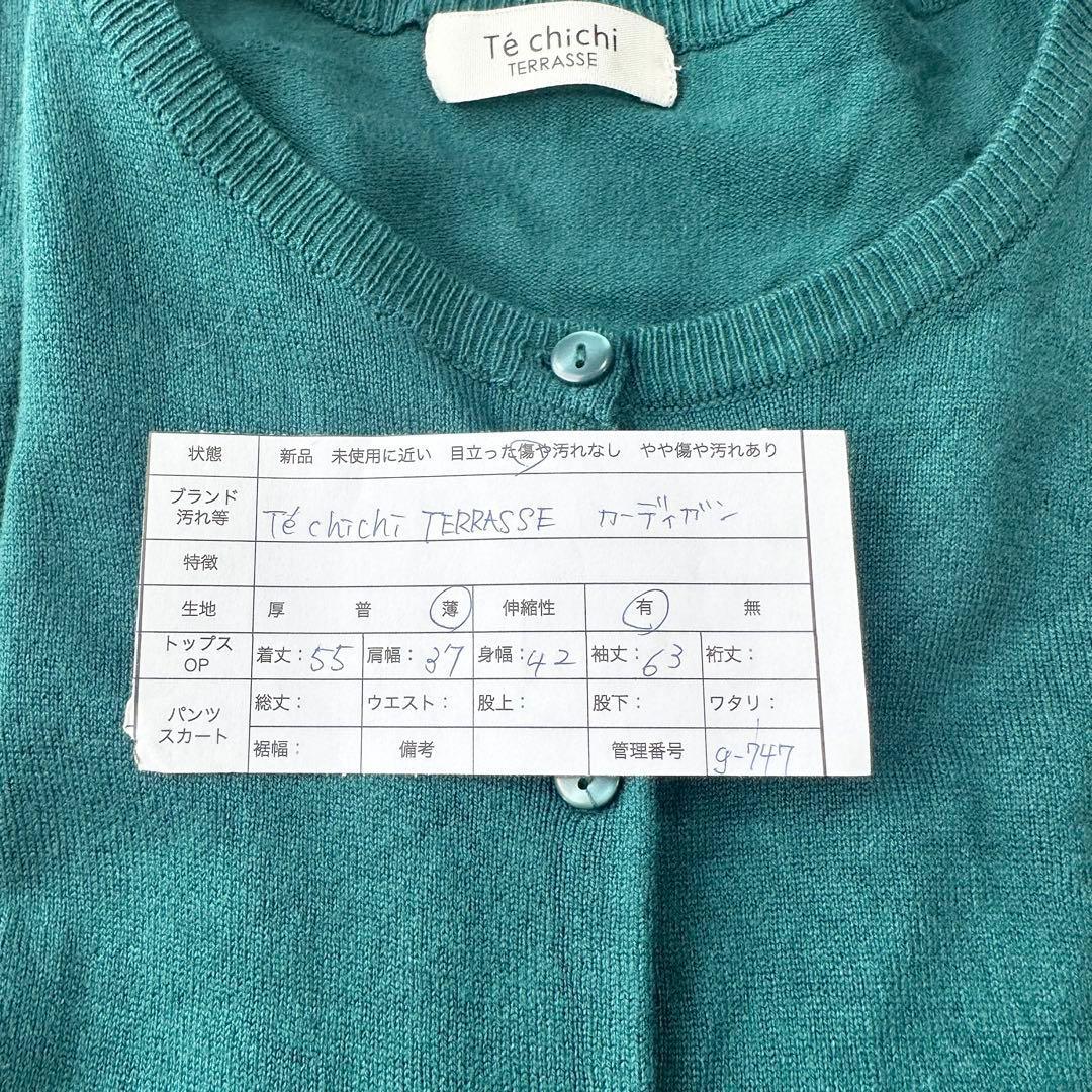 テチチテラス カーディガン 羽織り シンプル グリーン F 1F111E