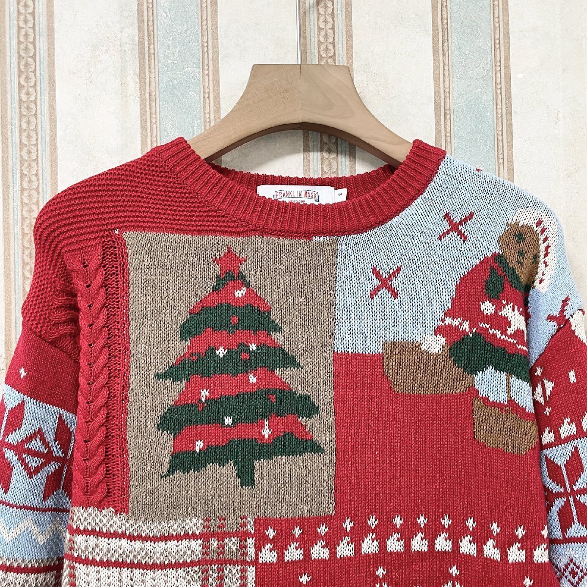 個性 定価5万 FRANKLIN MUSK・アメリカ・ニューヨーク発 セーター ウール混 暖かい 可愛い ツリー柄 ニット トップス クリスマス サイズ4