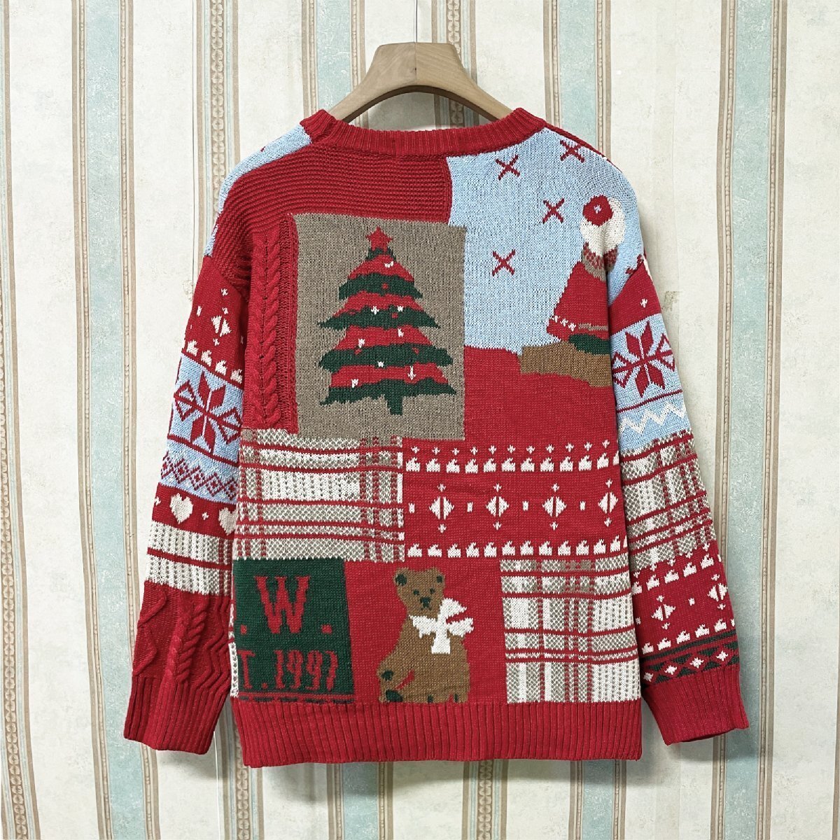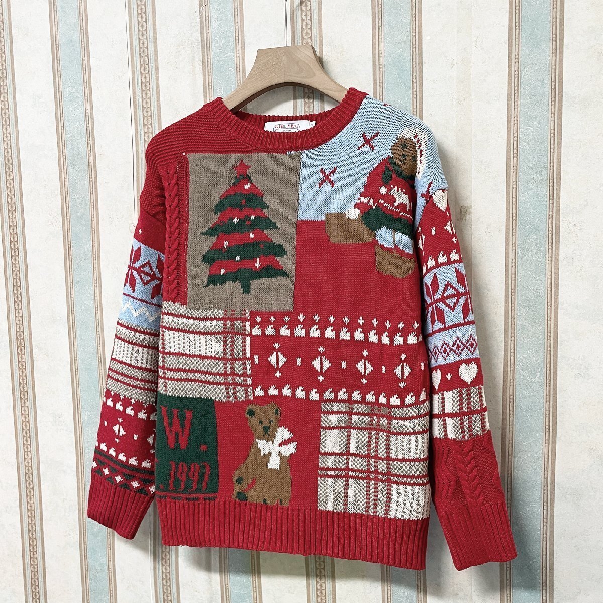 クリスマスツリー、クマなどのデザインにニット編みを組み合わせが、可愛らしさと上品さを兼ね備えています。長袖デザインにより、腕までしっかりと温めることができます。プルオーバーセーター首回りはクルーネックで小顔効果も。