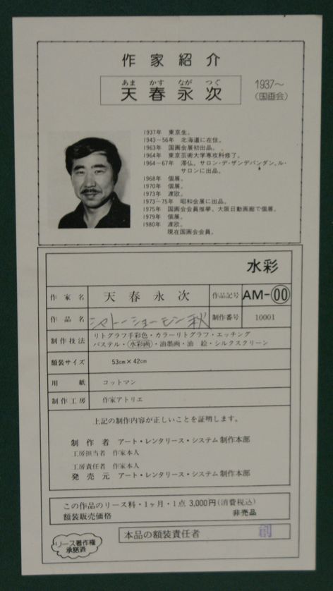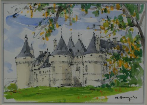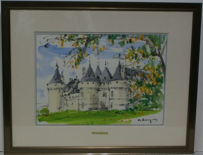 作者名:天野 永次・画題:「シャトーショーモン・秋」・技法: 水彩画〈386〉(H1-R4-6-24-98.5)