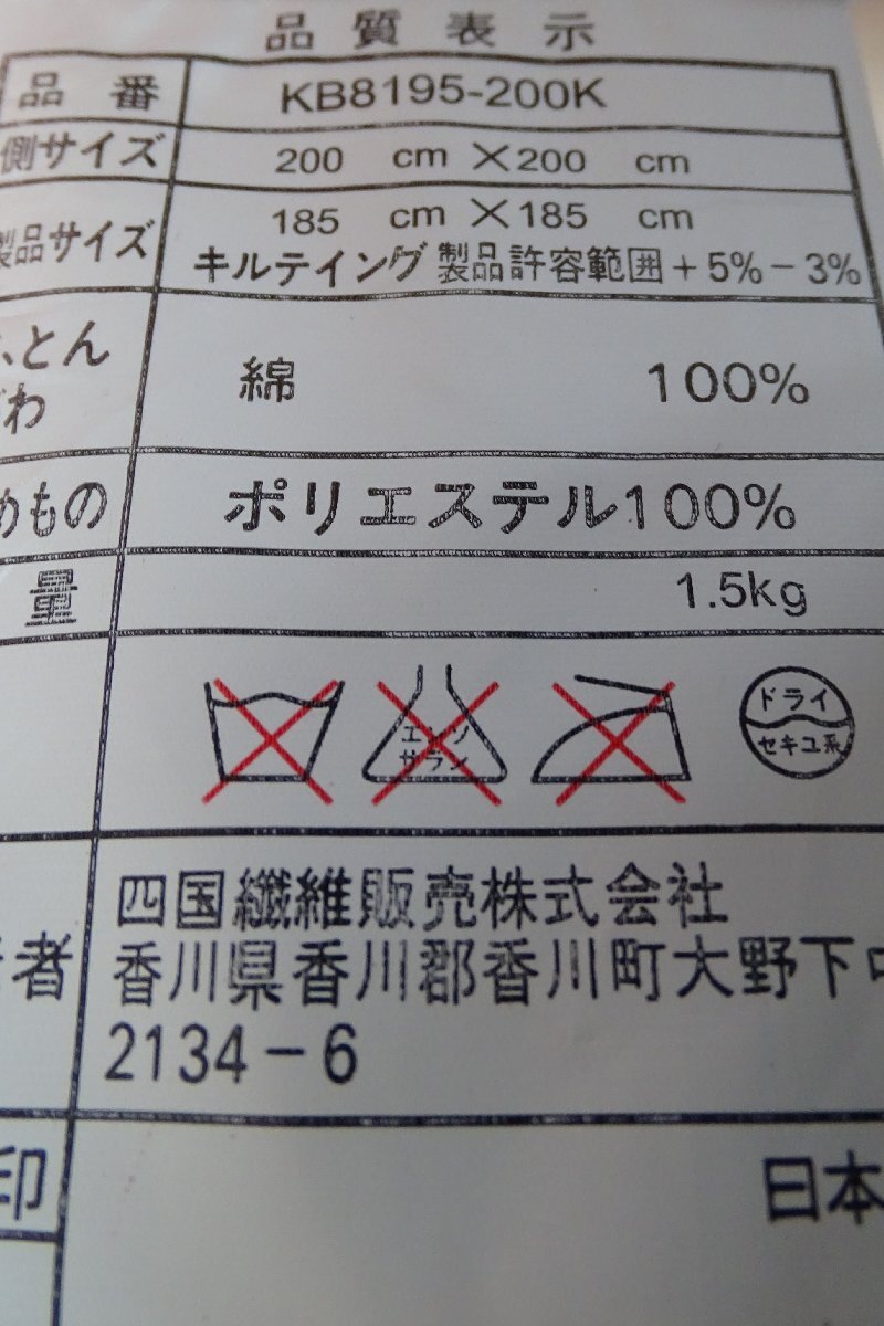 ・品名:コタツふとん(上下組)・販売元:全日本寝具協会・素材:綿100% ポリエステル100%・NO-R-R6-12-15.8