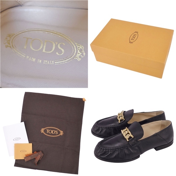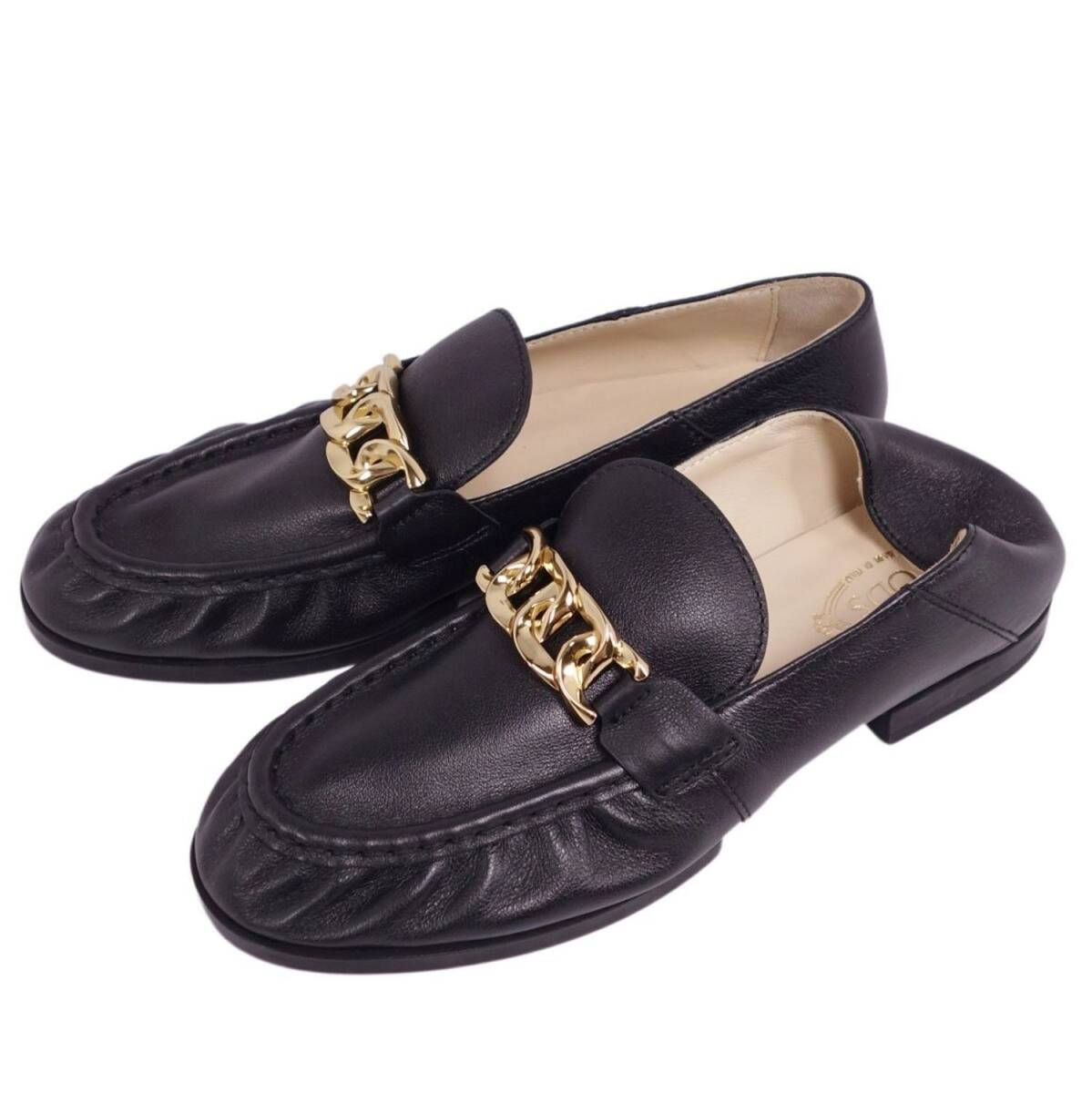 | 美品 トッズ TOD'S ローファー モカシン バブーシュ チェーン金具 レザー シューズ 靴 レディース 36(23cm) ブラック |