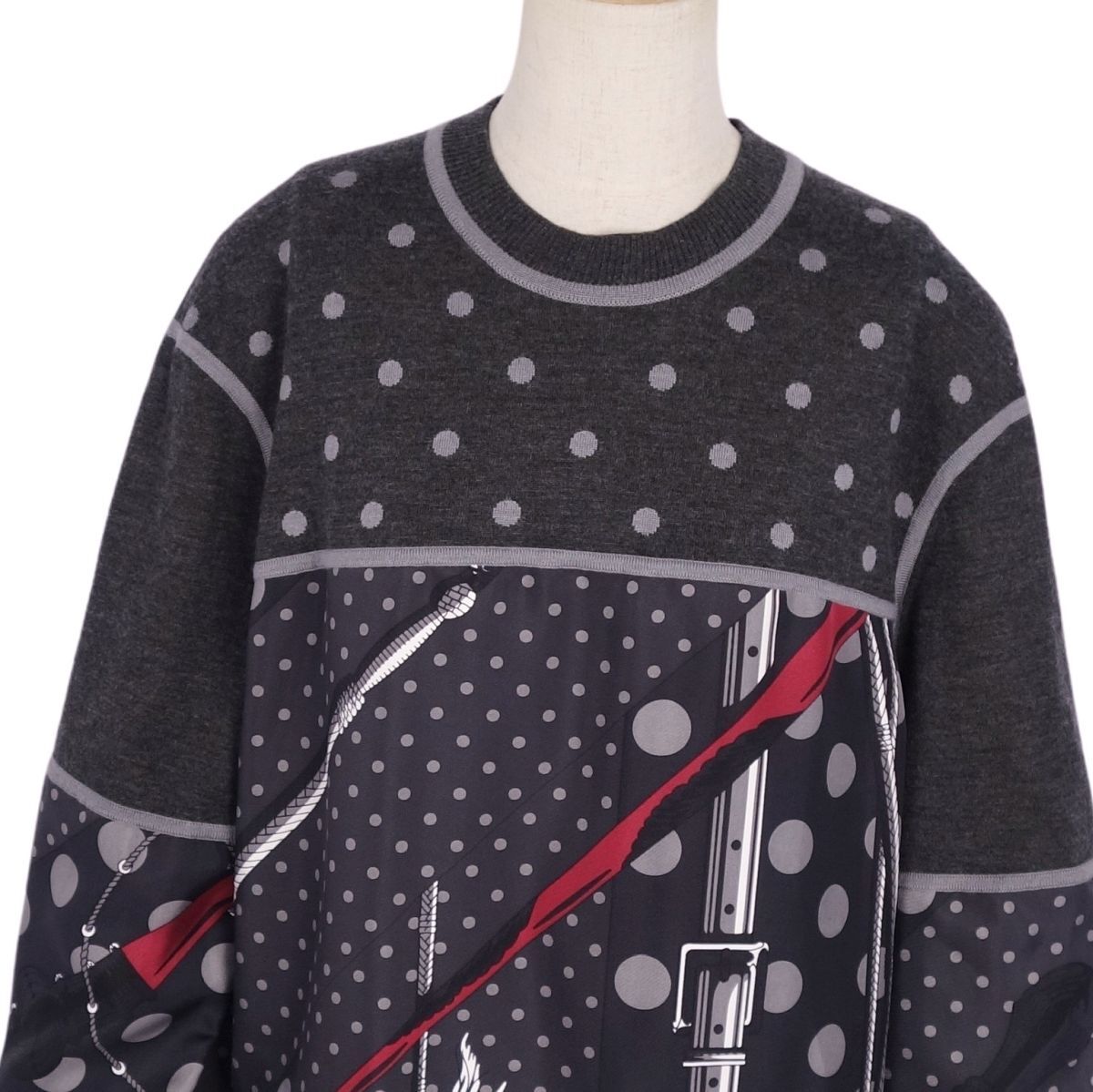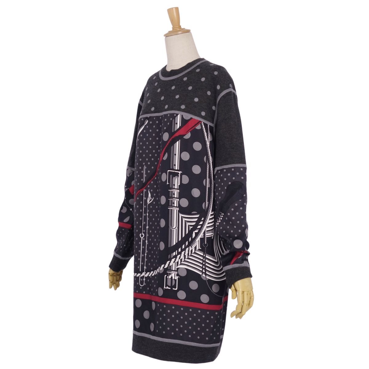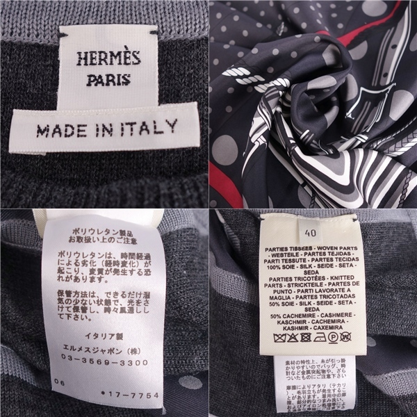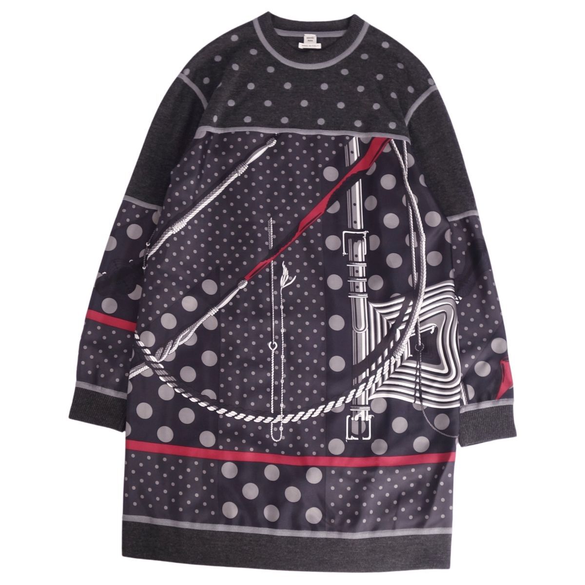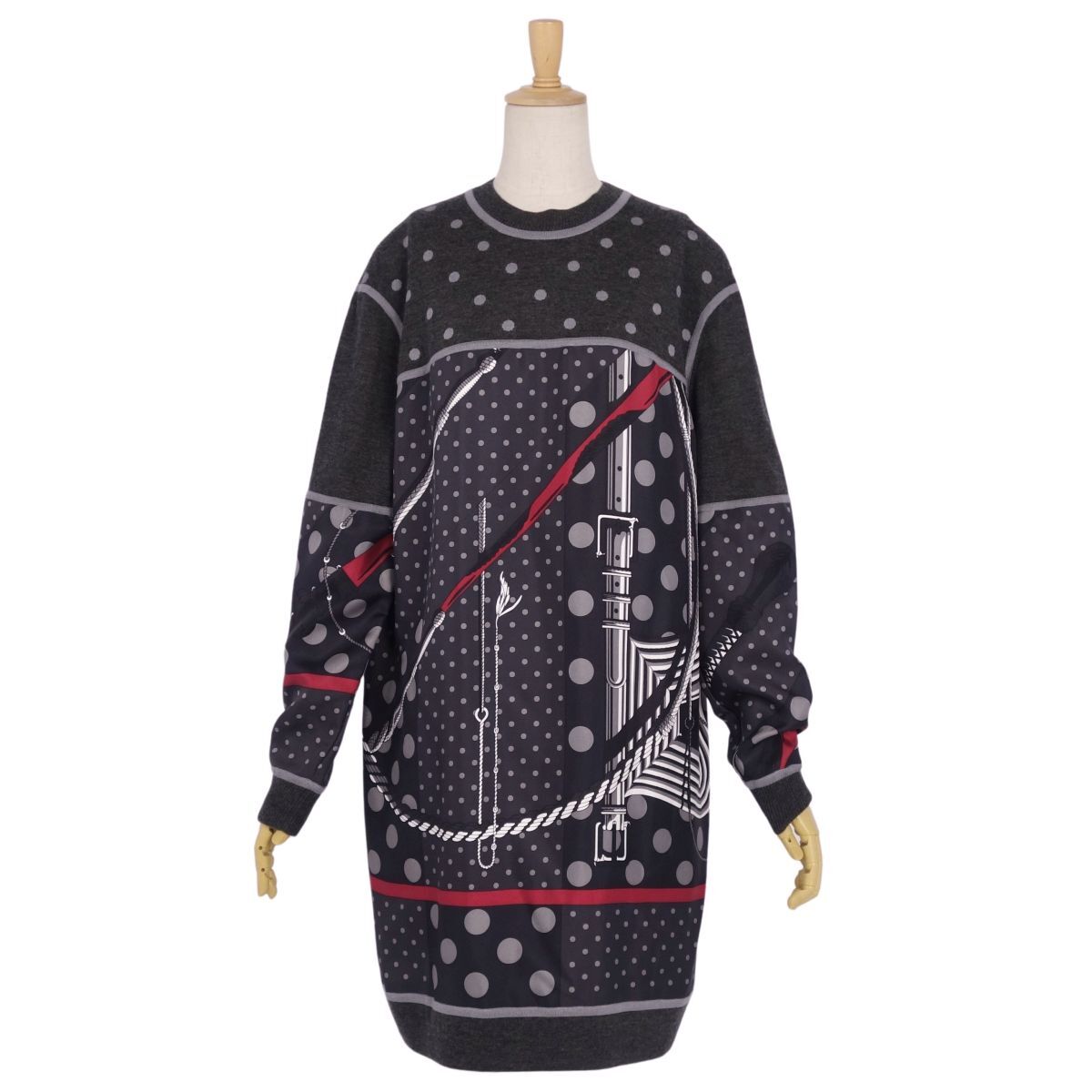| 極美品 エルメス HERMES ワンピース 21AW Clic Clac A Pois ツイルレーヌ ニット シルク 切り替え カシミヤ 40(M)グレー |